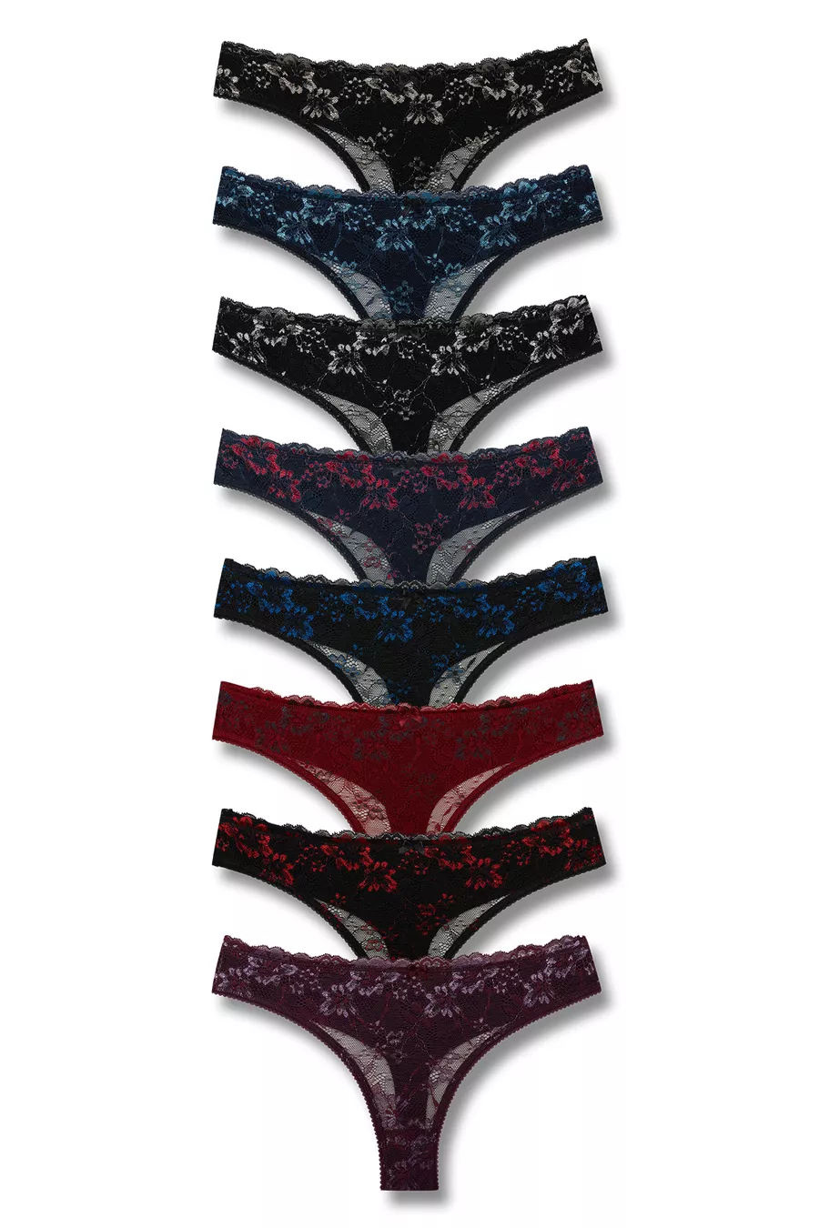 Material: Cotton Color: Black Pattern: Plain Fit: Thong Collection: Design Material Composition: 65% Cotton, 28% Polyamide, 7% Elastane Washing Instructions: Wash at 30°. Iron at 110°. Do not tumble dry Fabric Type: Woven Waist: Regular Waist Occasion: Chic/Night Additional Feature: Stretch Waist Sustainability Detail: Yes Package Contents: Pack of 8 Product Detail: Lace Detail Origin: TR
