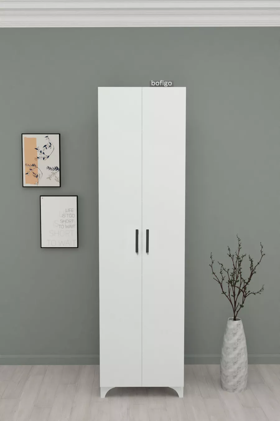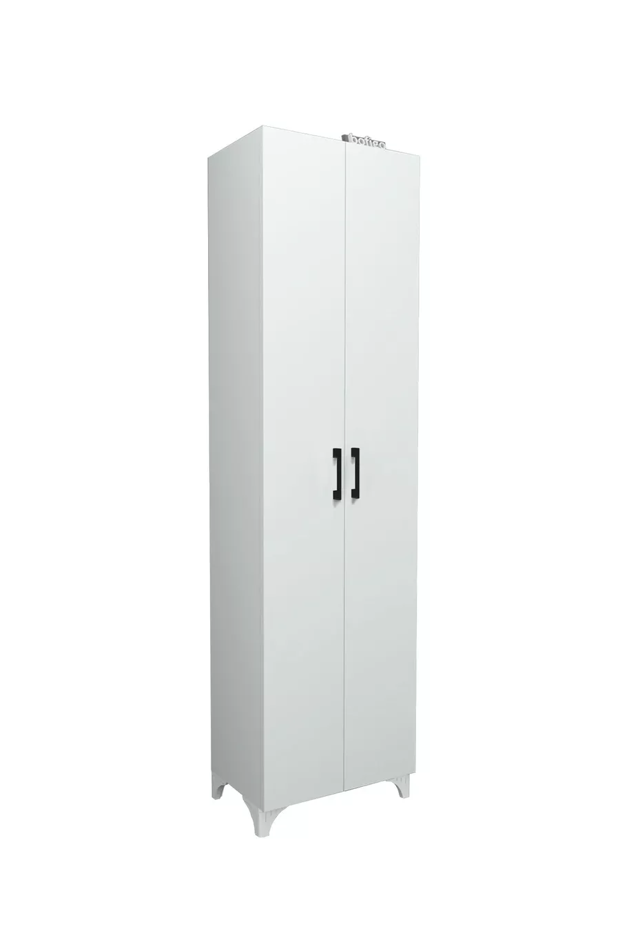 Material: Chipboard Color: White Number of Doors: 2 Height: 177 cm Width: 49 cm Depth: 32 cm Warranty Period: 2 Years Style: Scandinavian Theme / Style: Modern Feature: Shelved