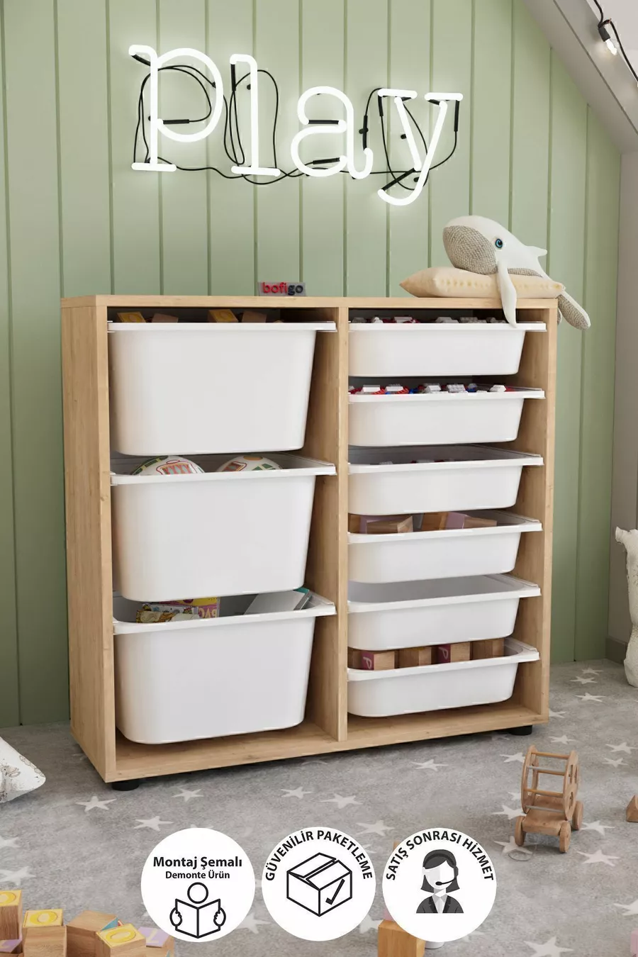 Material: Plastic Number of Drawers: Multiple Width: 89 cm Depth: 30 cm Height: 85 cm Color: Brown Theme / Style: Modern Origin: TR Age: 4 - 8 Years Feature: Other