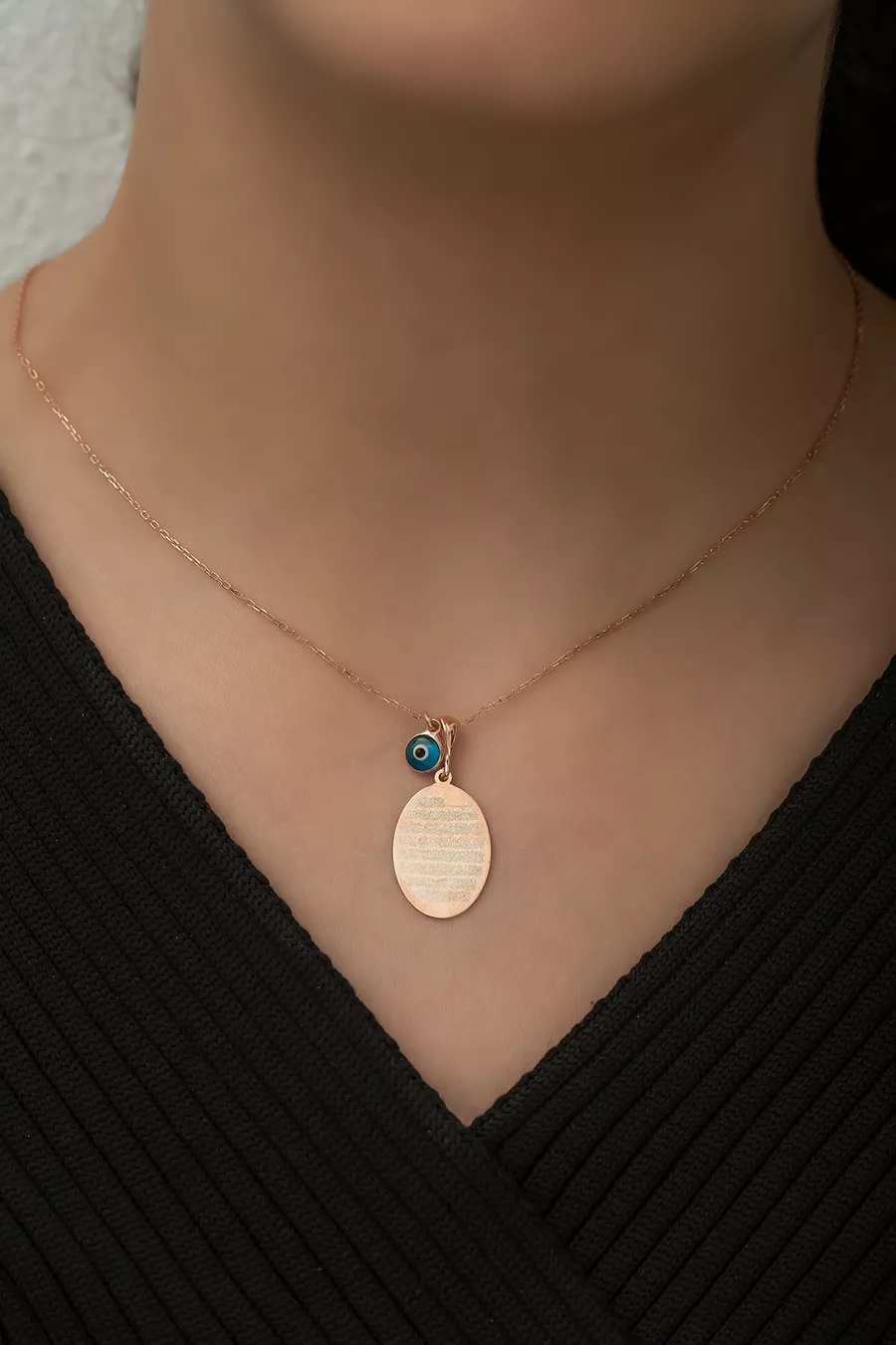 Adjustable Silver Plate Oval Ayetel Kürsi Necklace Women’s Silver Necklace