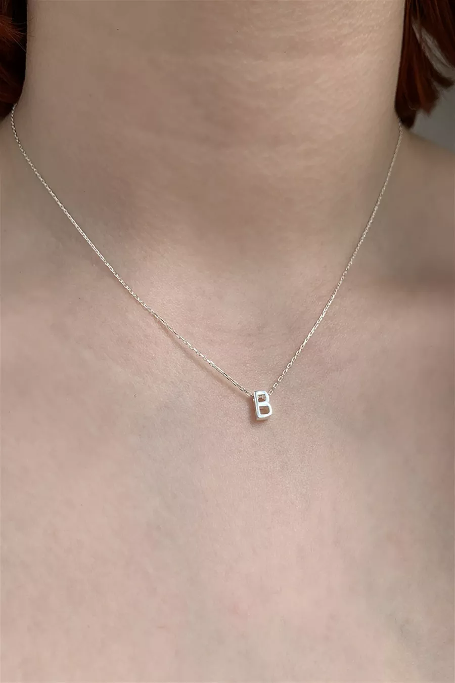 Adjustable Three-Dimensional Silver Plated B Letter Necklace Length Cm