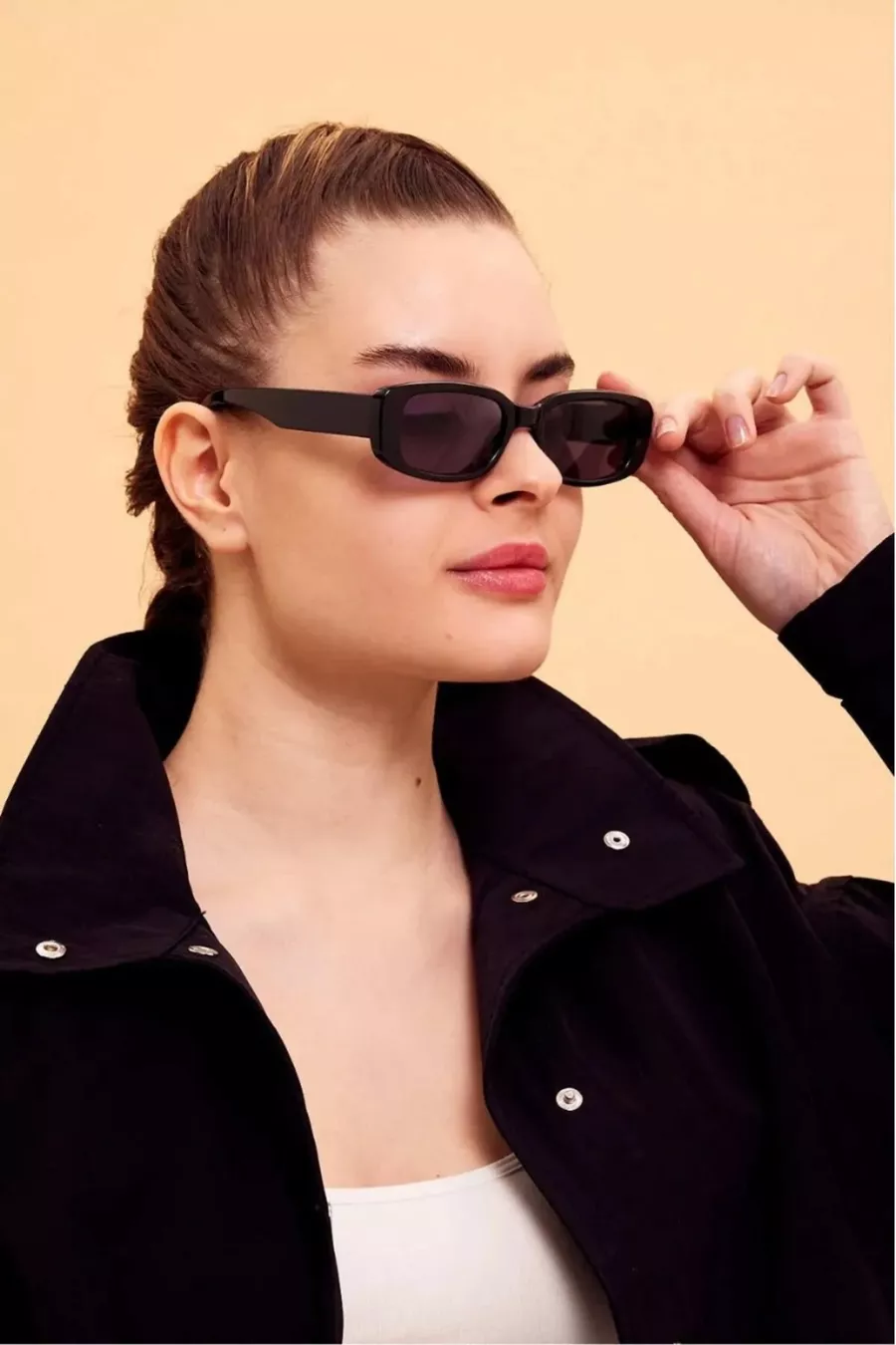 Frame Color: Black Lens Color: Black Lens Material: UV400 Color: Black Frame Material: Bone Lens Type: Matte Frame Shape: Geometric Frame Type: Full Frame Pattern: Plain Feature: Long