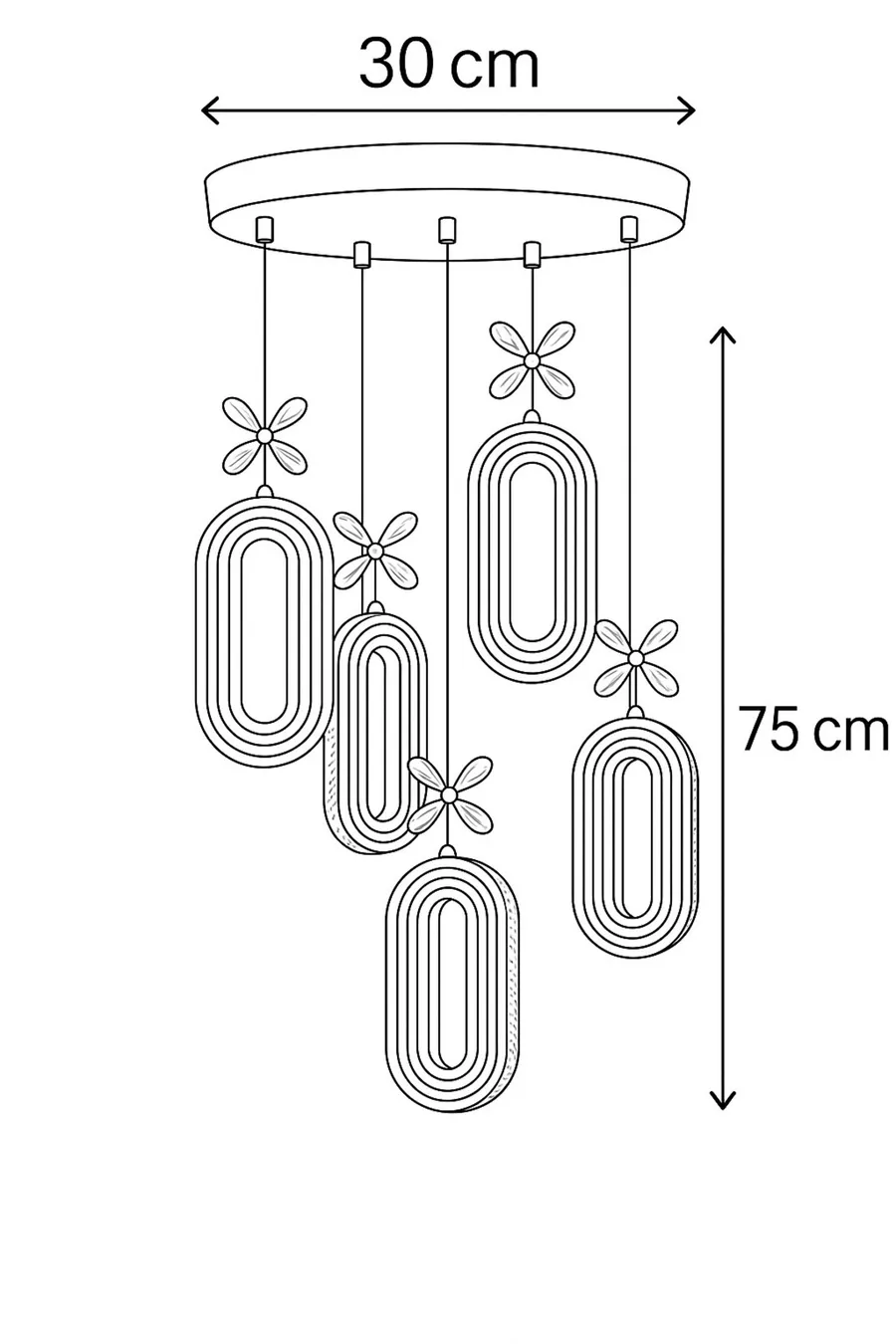 Material: Metal Model: With LED Socket Type: E27 Number of Bulb Sockets: 5 Color: Gold Size/Dimension: 35 x 35 Height: 71 - 80 cm Usage Area: Living Room Origin: Turkey Feature: Remote Controlled