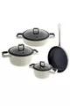 Color: Beige Size/Dimension: 18 cm Volume: 1.8 L Feature: Suitable for induction cooktop Exterior Material: Granite Interior Material: Granite Number of Pieces: 7 Origin: TR Care Instructions (Food Contact): Dishwasher safe Food Contact Symbol: No Material: Aluminum