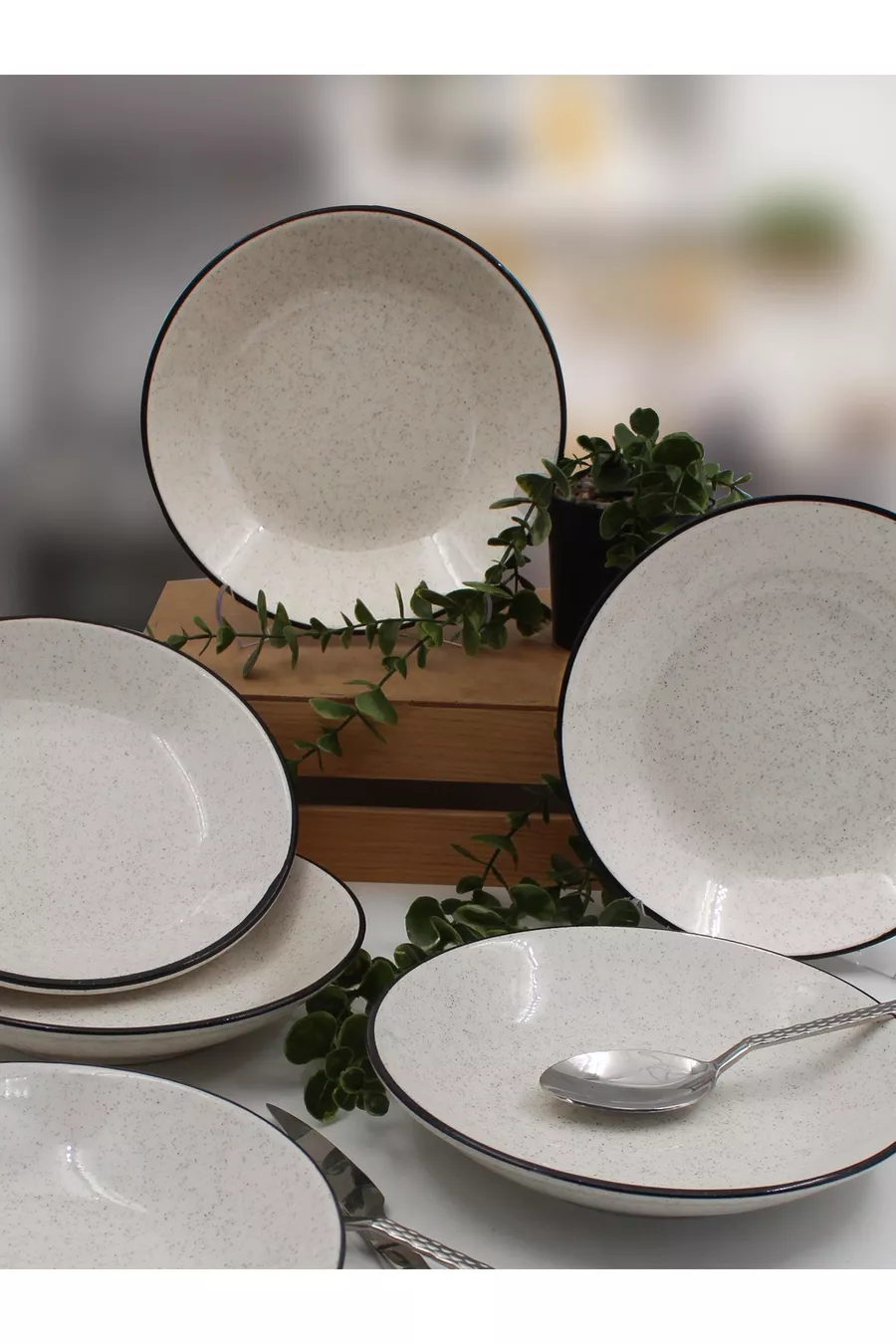 Material: Ceramic Number of Pieces: 6 Color: Black Size/Dimension: 20 cm Feature: Microwave Safe Theme / Style: Modern Shape: Round Product Type: Deep Plate Origin: TR