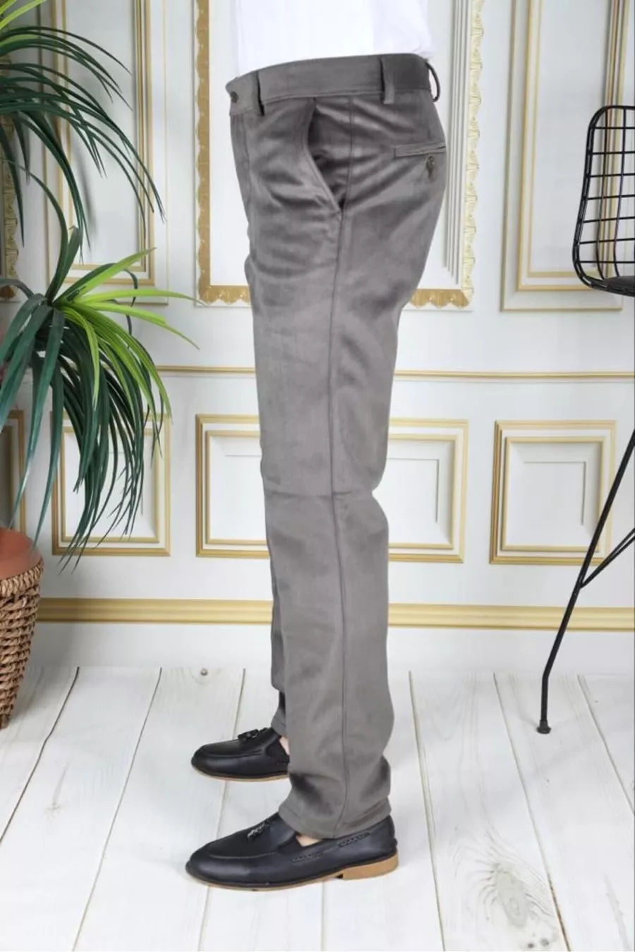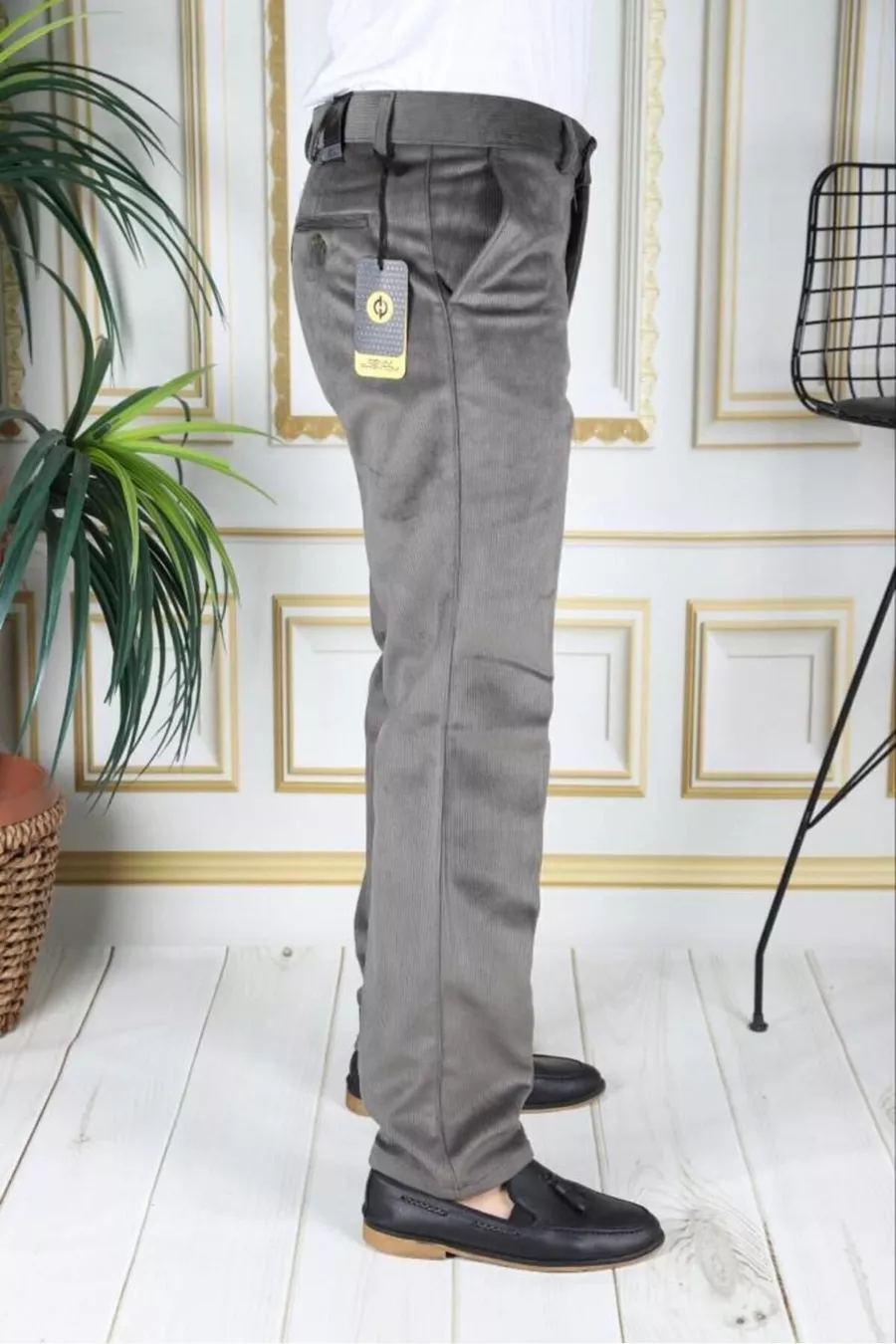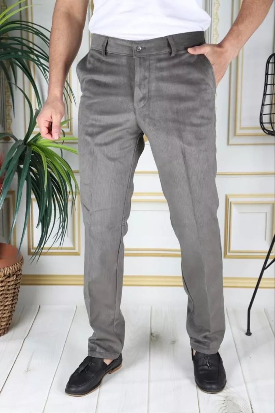 Aqua Green Polar Velvet Pants with Stretch, Thick Corduroy, Classic Cut, Side Pockets, Lined - Phantom Jeans