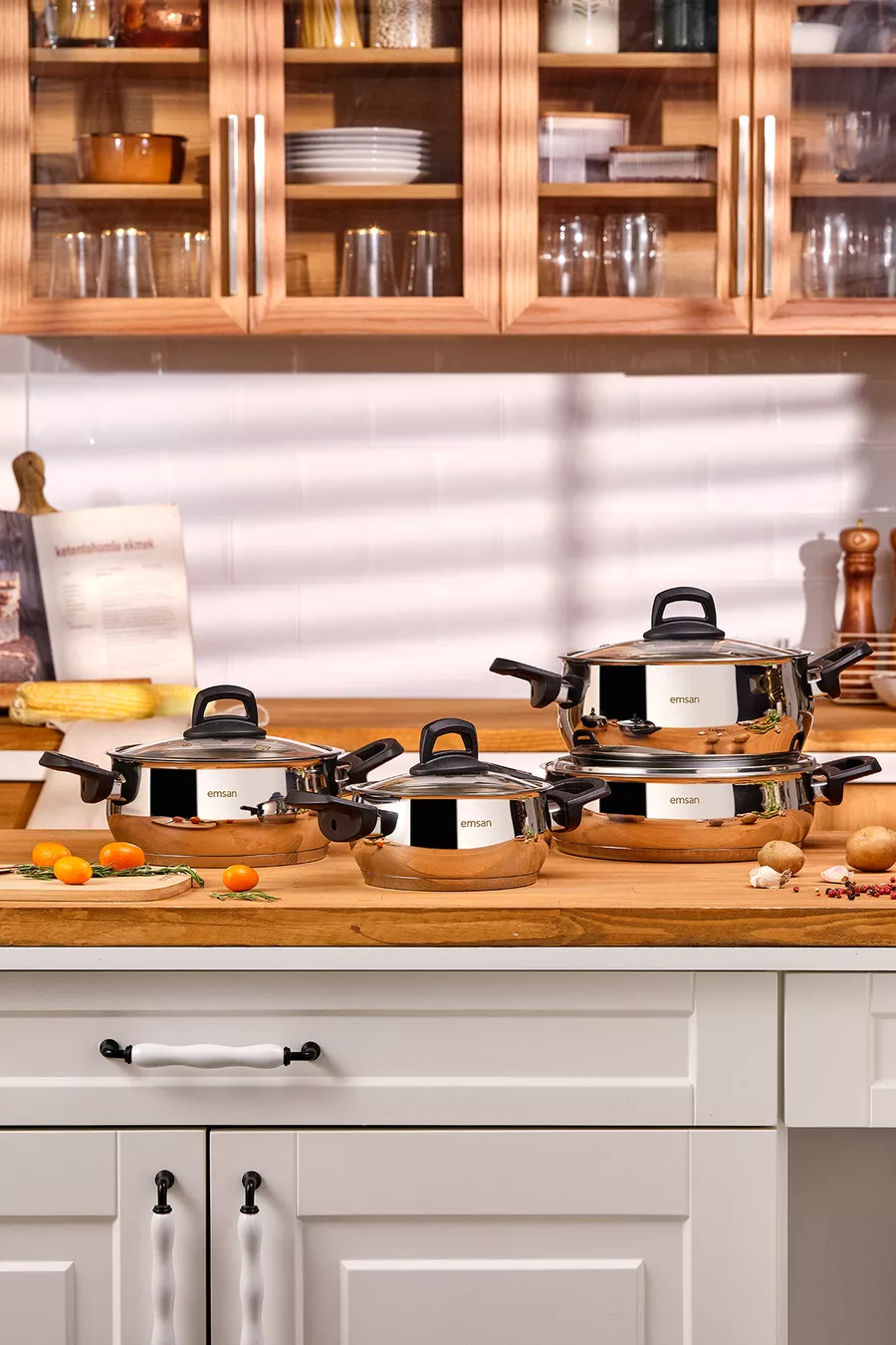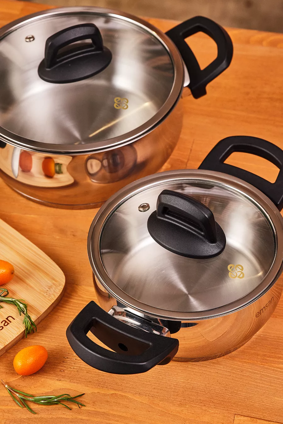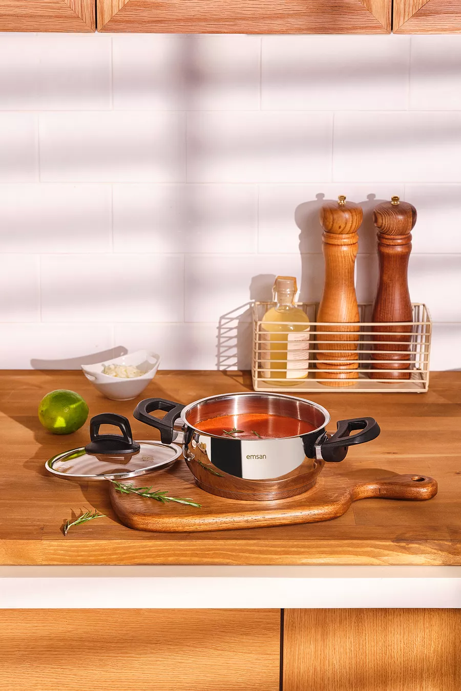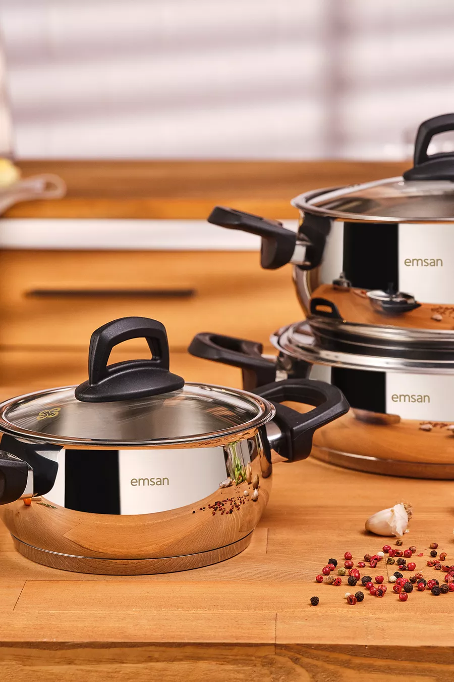 Color: Gray Size/Dimension: 16 cm Capacity: 1.6 L Feature: Suitable for induction stove Outer Material: Steel Inner Material: Steel Number of Pieces: 8 Origin: Turkey Food Contact Symbol: Yes Material: Steel