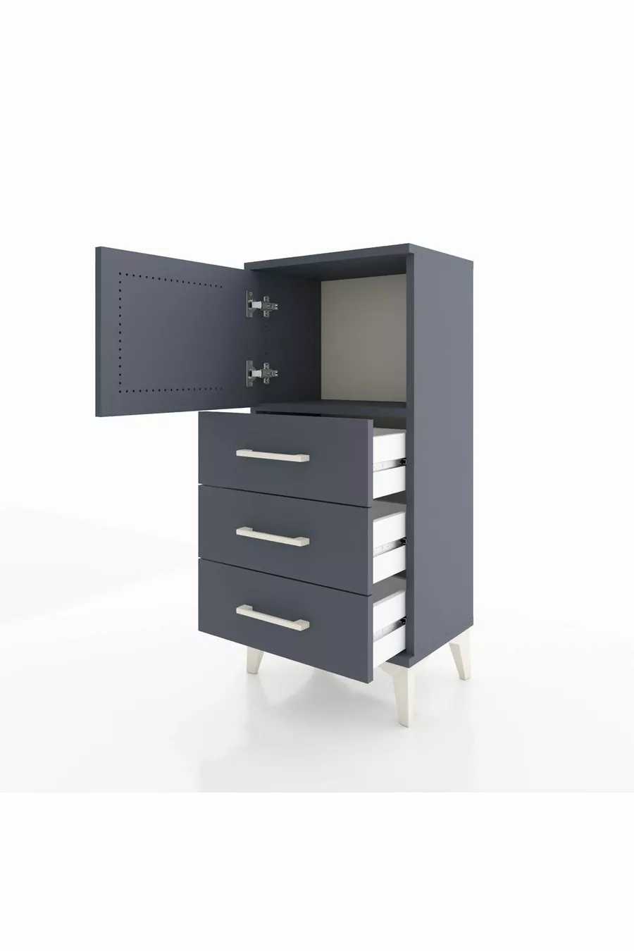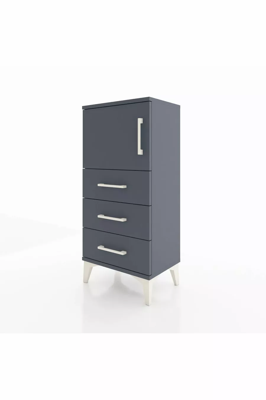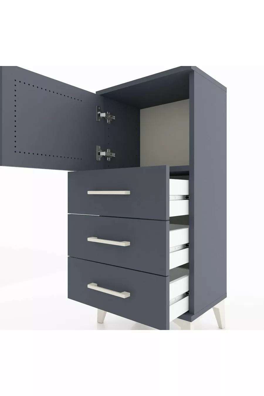 Arges Commode Single Shelf 3 Drawers Single Door Anthracite-Anthracite