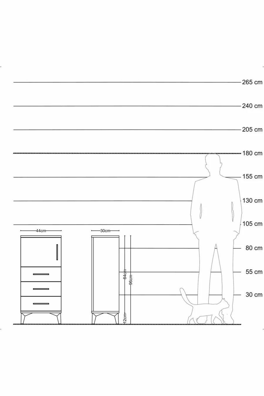 Material: Particleboard Color: Multicolored Number of Drawers: 3 Height: 96 cm Width: 44 cm Depth: 30 cm Style: Modern Theme / Style: Modern Origin: TR