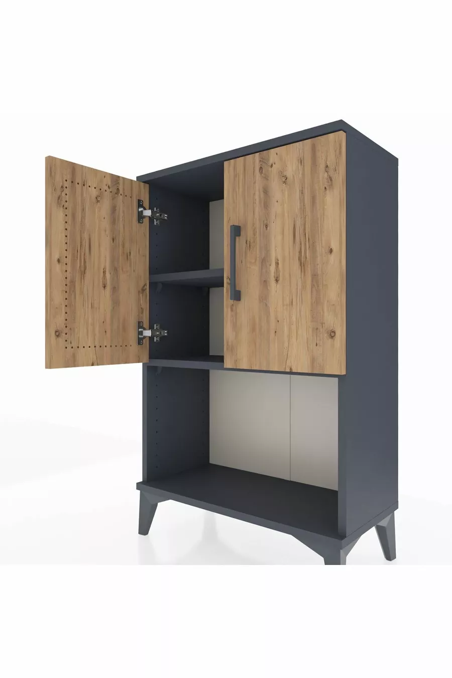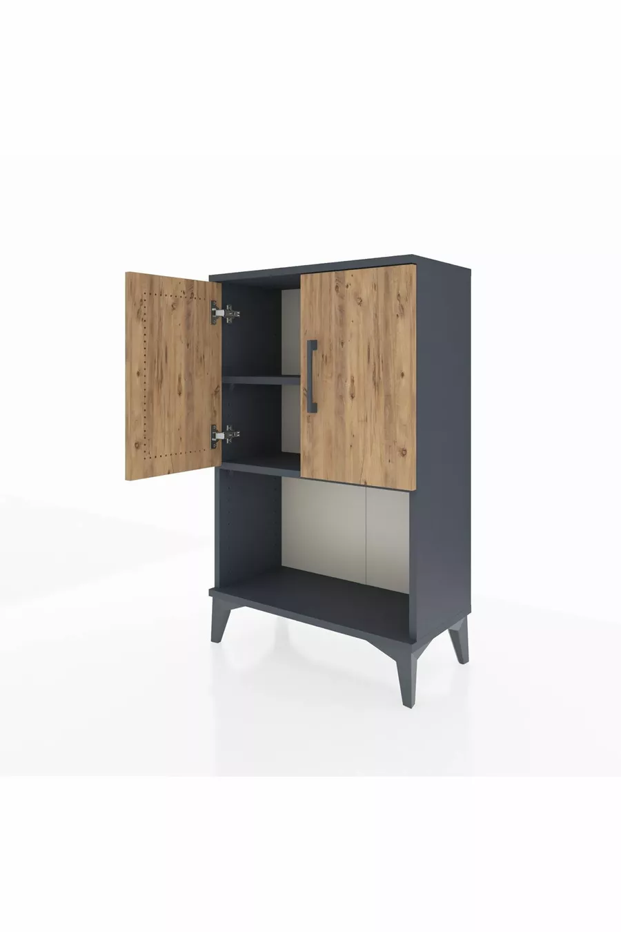 Arges Commode 2-Shelf 2-Door Anthracite-Pine
