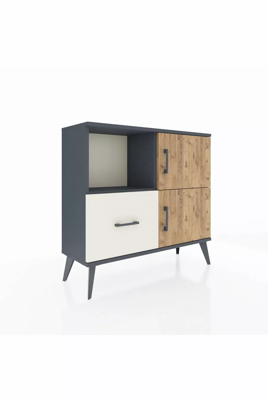 Arges Dresser with 2 Shelves, 1 Drawer, 2 Doors, Anthracite-Pine/Stone