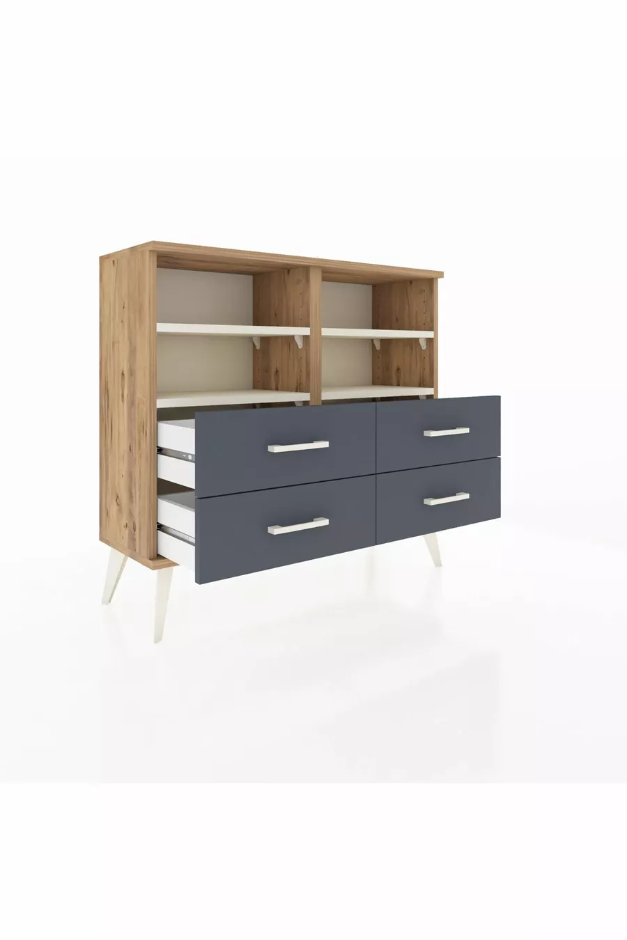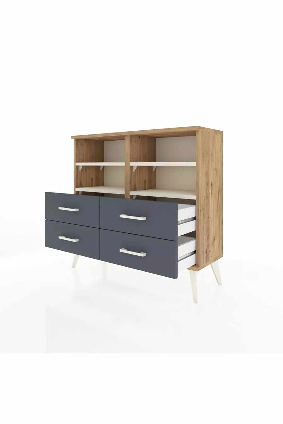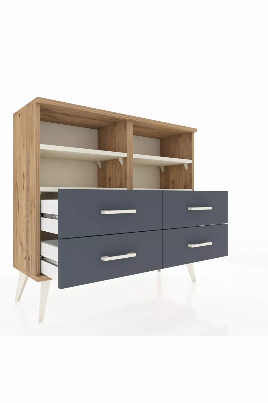 Arges Dresser 4 Shelves 4 Drawers Pine-Truffle/Anthracite