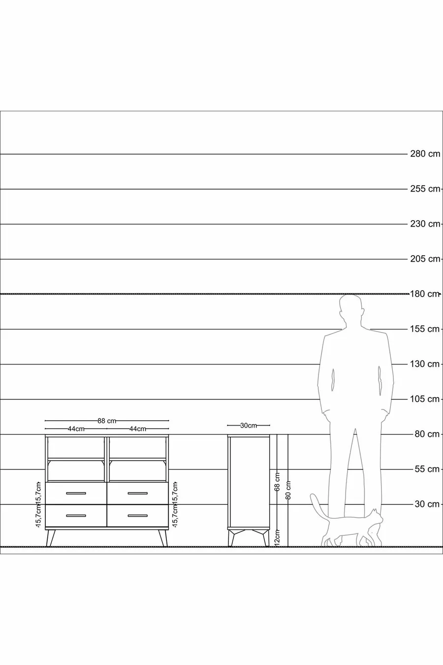 Color: White Material: Particleboard Height: 80 cm Width: 88 cm Depth: 30 cm Number of Drawers: 4 Product Feature: With Lid Style: Modern Theme / Style: Modern Origin: TR