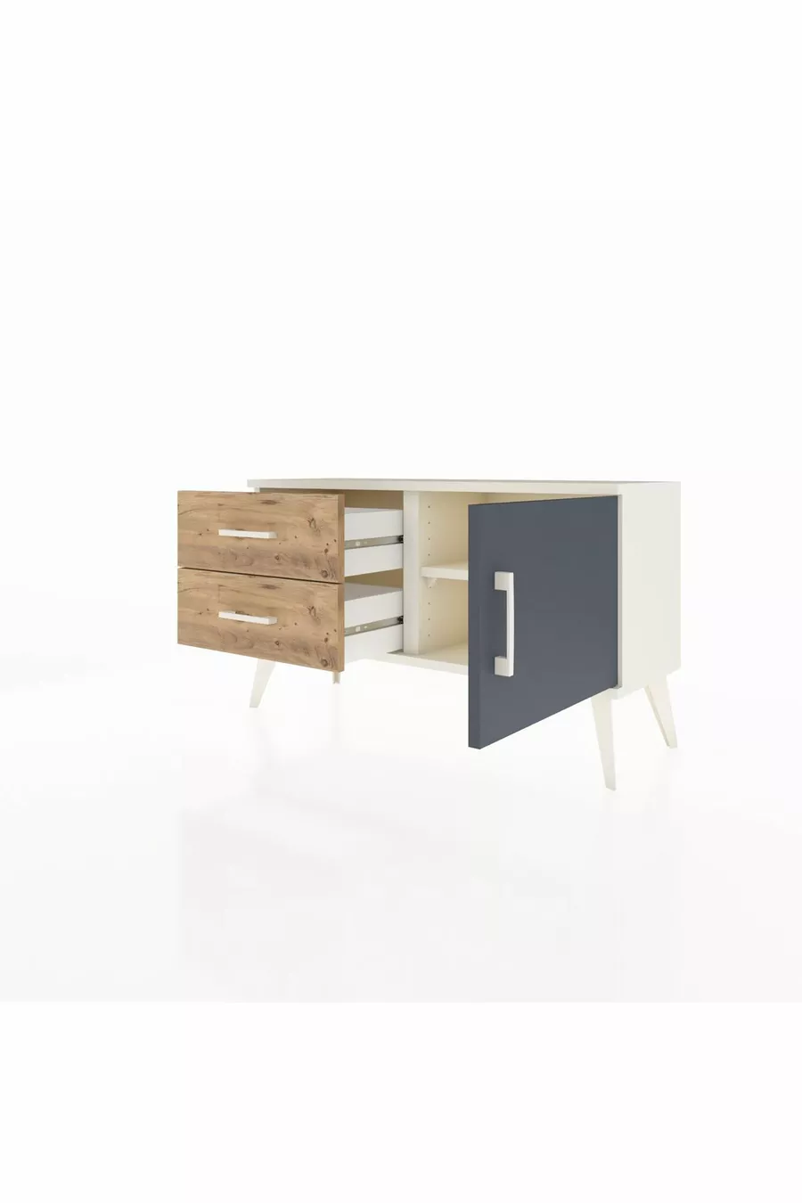 Arges Dresser with One Shelf, 2 Drawers, and One Door Moonstone-Anthracite/Pine