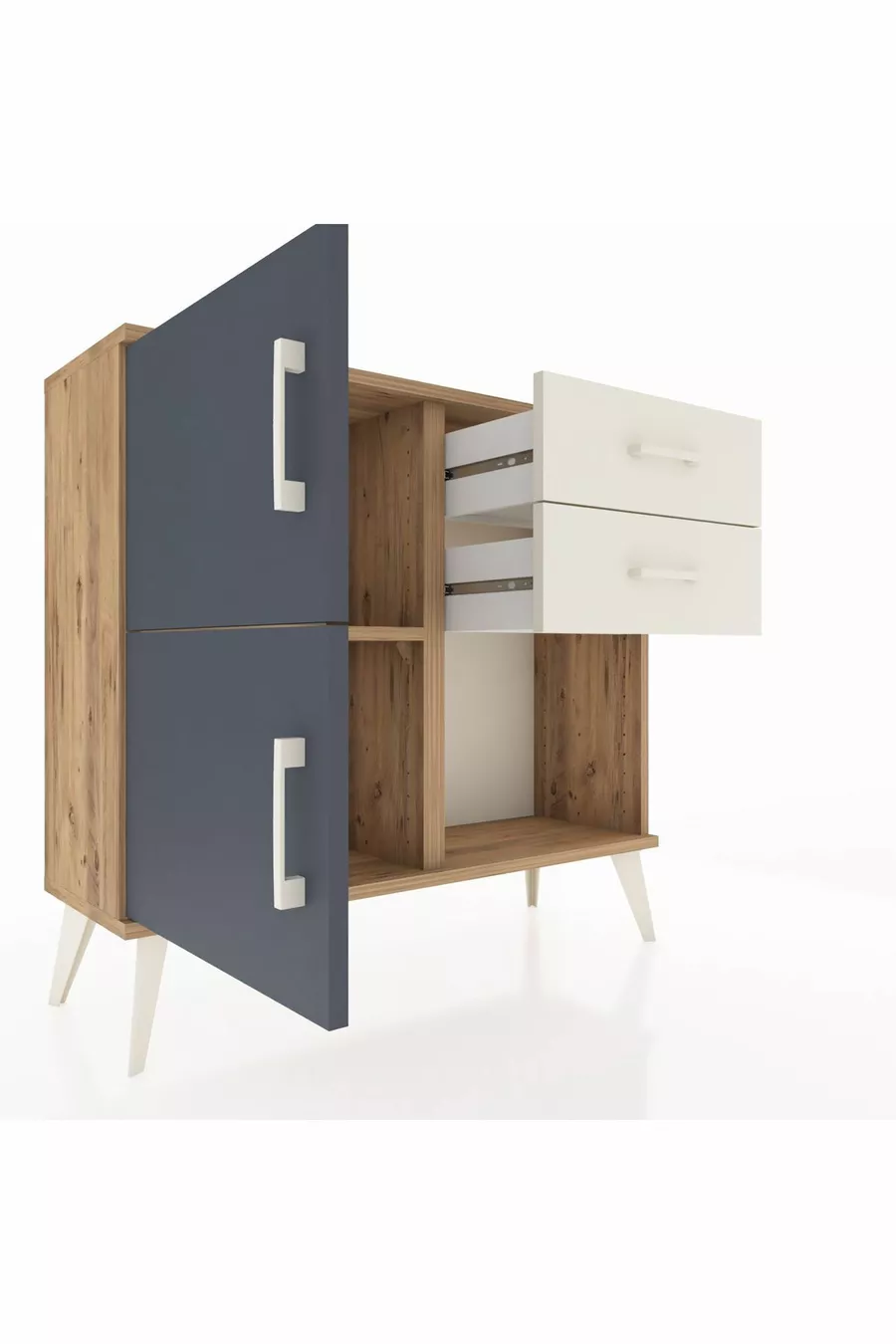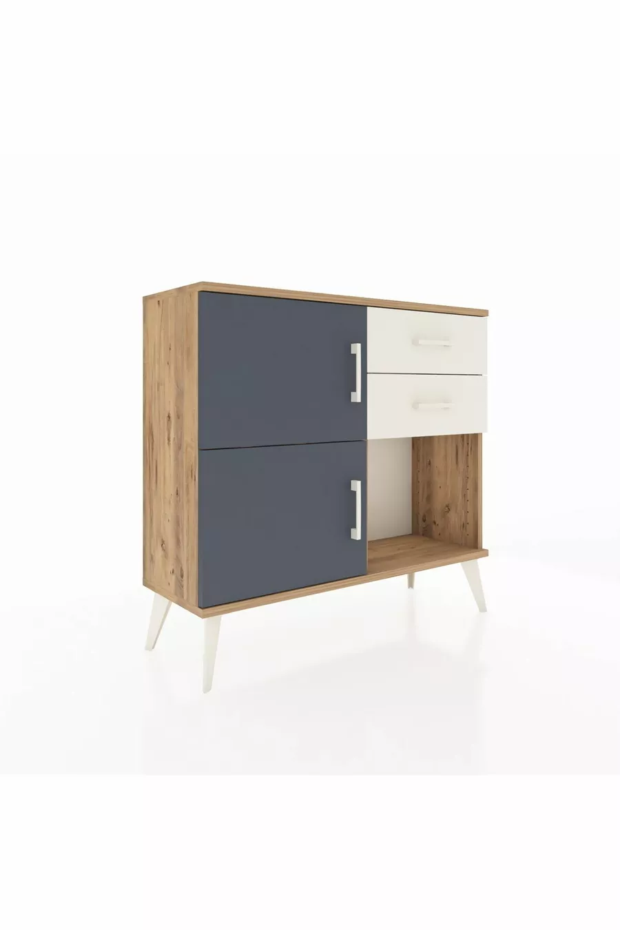 Arges Dresser with One Shelf, 2 Drawers, 2 Doors, Pine-Anthracite/Stone Gray
