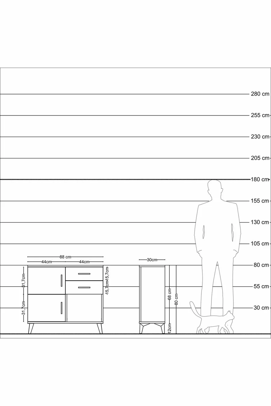 Color: White Material: Particleboard Height: 80 cm Width: 88 cm Depth: 30 cm Number of Drawers: 2 Product Feature: With Lid Style: Modern Theme / Style: Modern Origin: TR