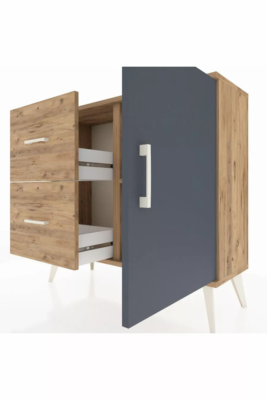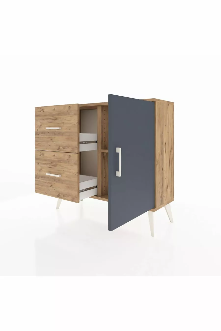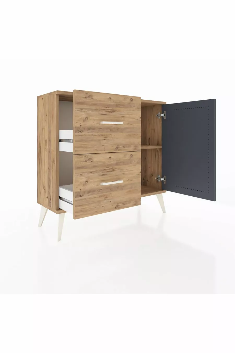 Arges Dresser with Single Shelf, 2 Drawers, Single Door Pine-Anthracite/Pine