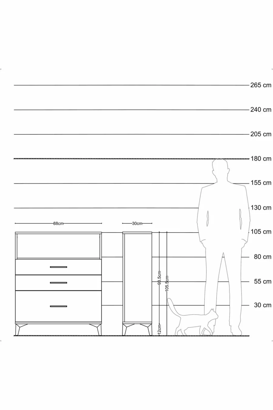 Color: Multicolor Material: Particleboard Height: 106 cm Width: 88 cm Depth: 30 cm Number of Drawers: 3 Product Feature: With Drawers Style: Modern Theme / Style: Modern Origin: TR