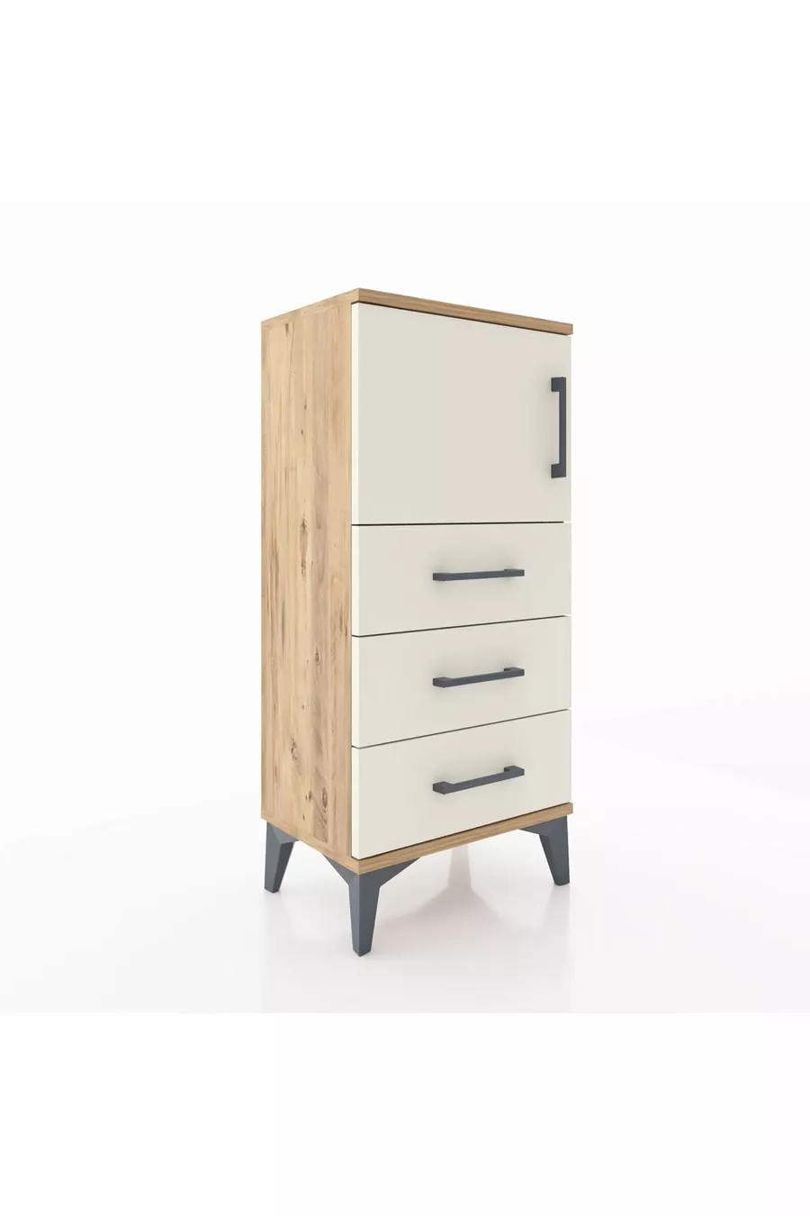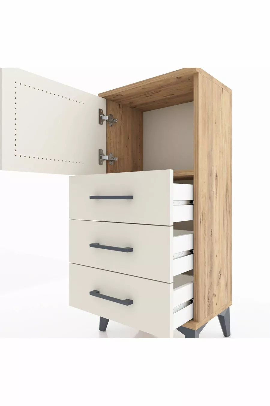 Arges Komodin Single Shelf 3-Drawer Single Door Pine-Aytaşı