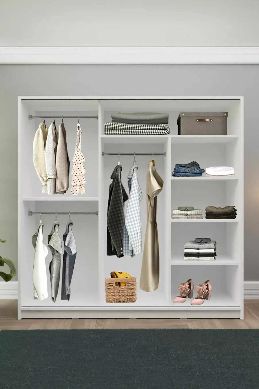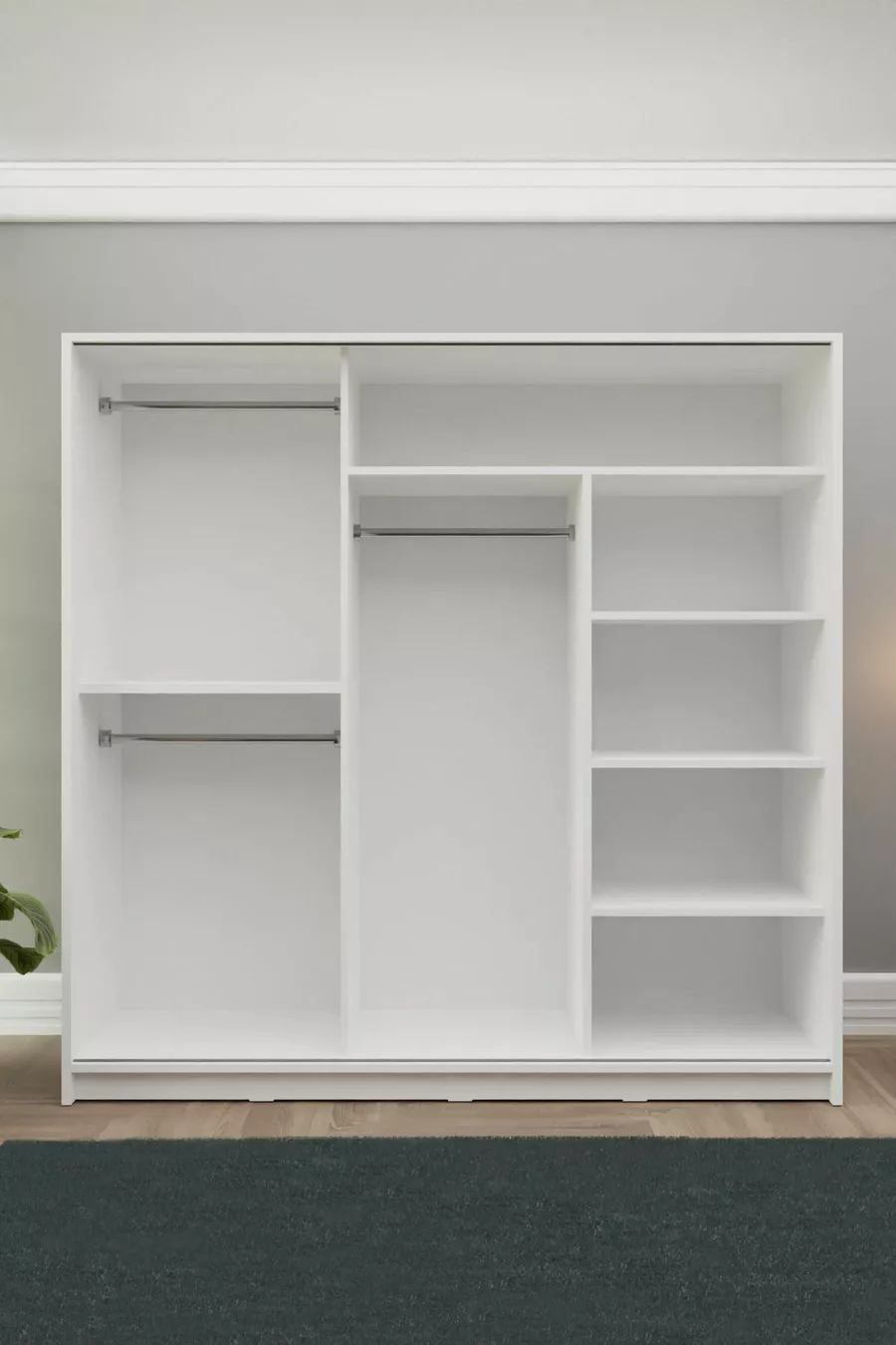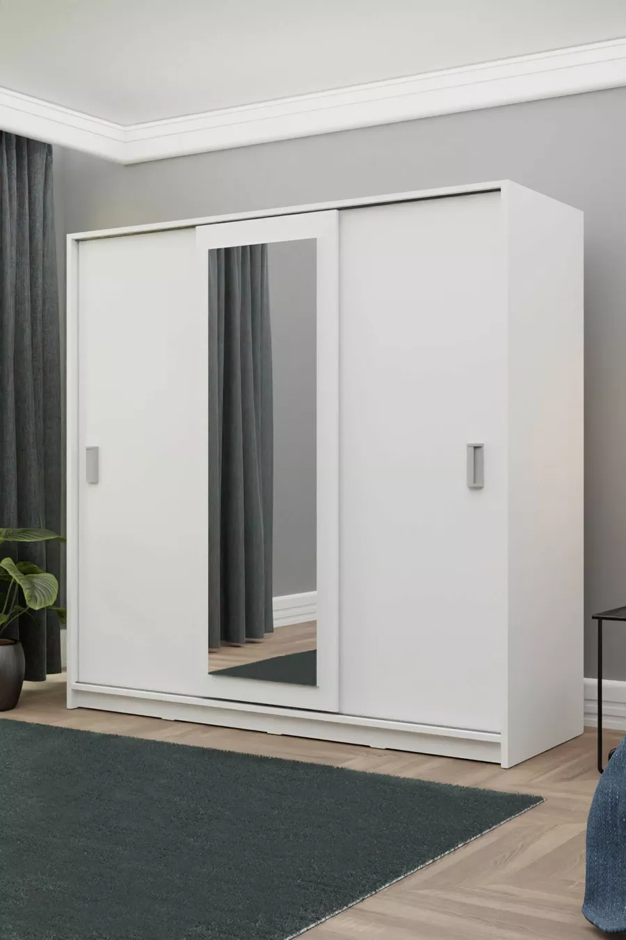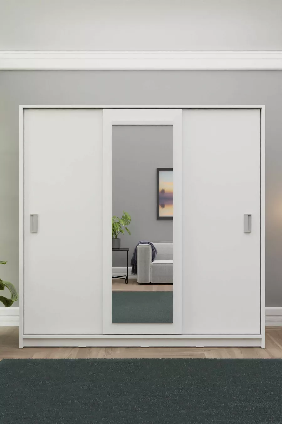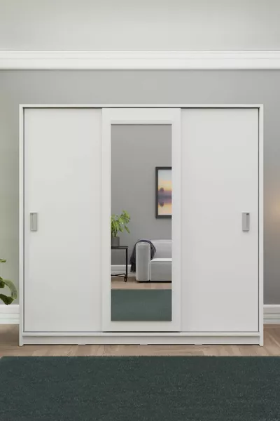 Function: Sliding Color: White Width: 160 cm Depth: 55 cm Number of Doors: Sliding Body Material: Particleboard Mirror Function: Mirrored Style: Modern Theme / Style: Modern
