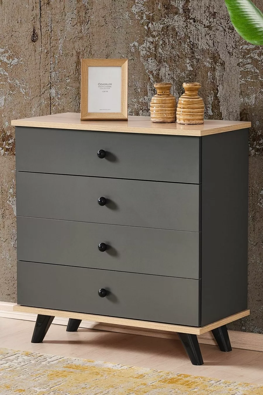 Color: Gray Warranty Period: 2 Years Material: Particle Board Height: 78 cm Width: 76 cm Depth: 38 cm Number of Drawers: 4 Product Feature: With Drawers Style: Scandinavian Theme / Style: Modern Origin: TR Feature: With Drawers