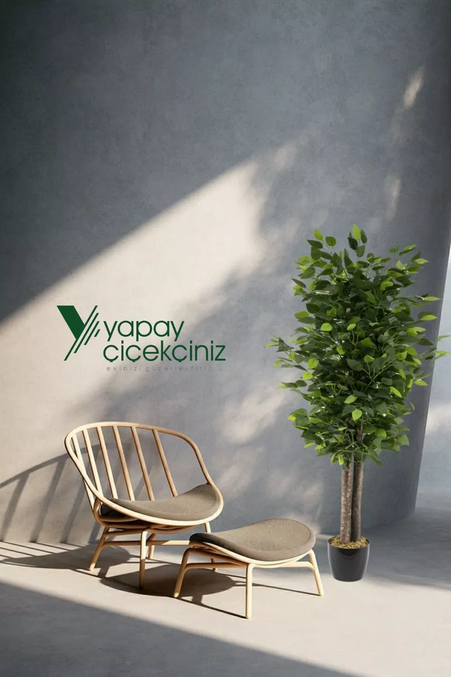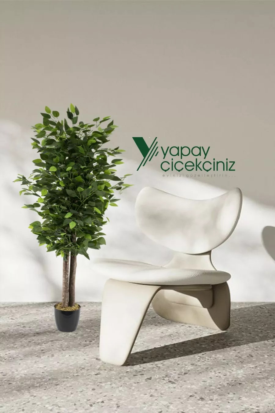 Artificial Benjamin Tree with Dense Leaves in Black Pot