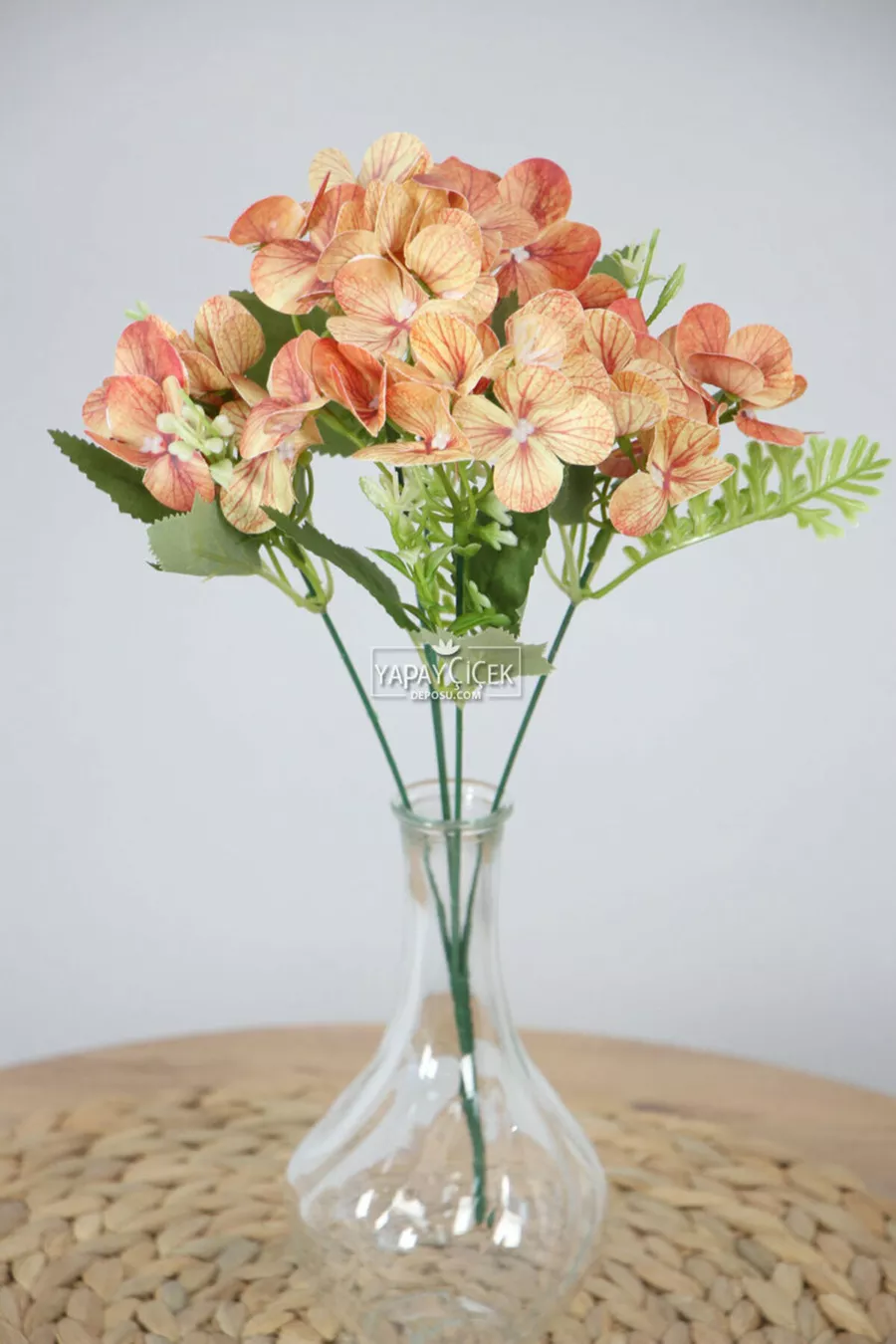 Artificial Small Wet Hydrangea Bundle cm Brown