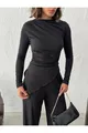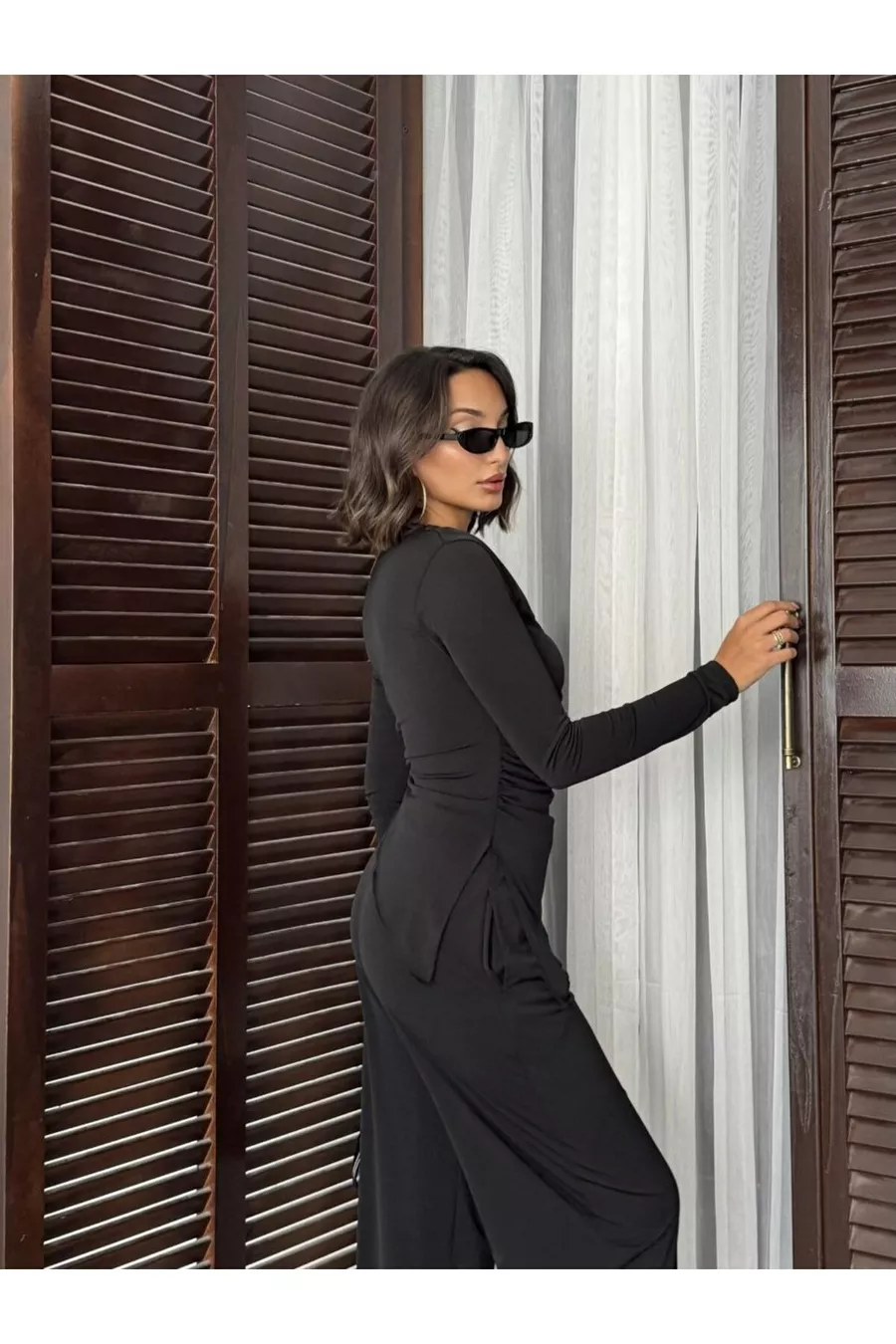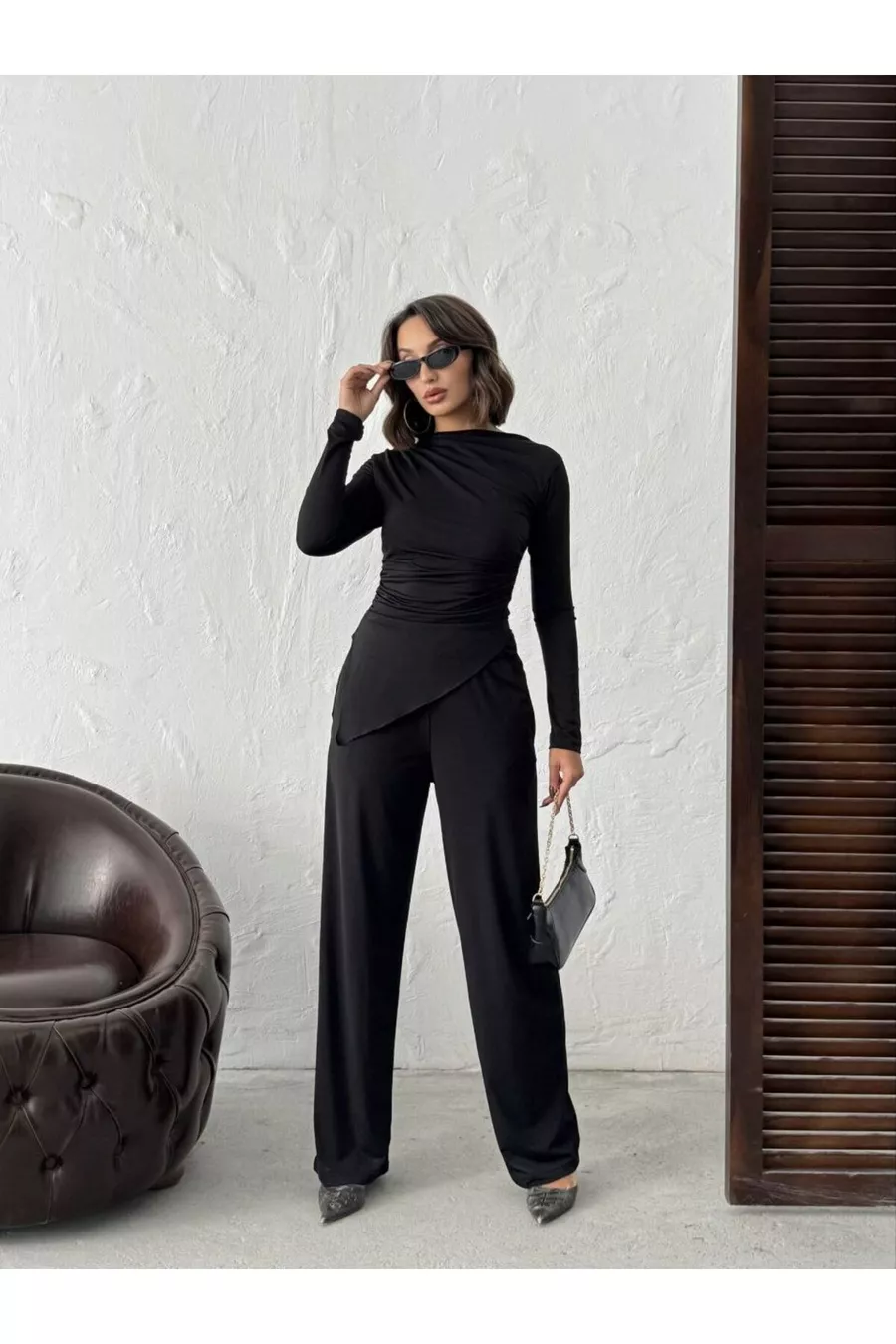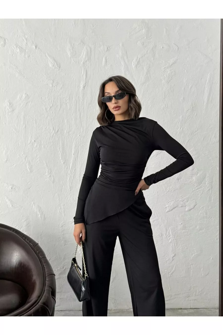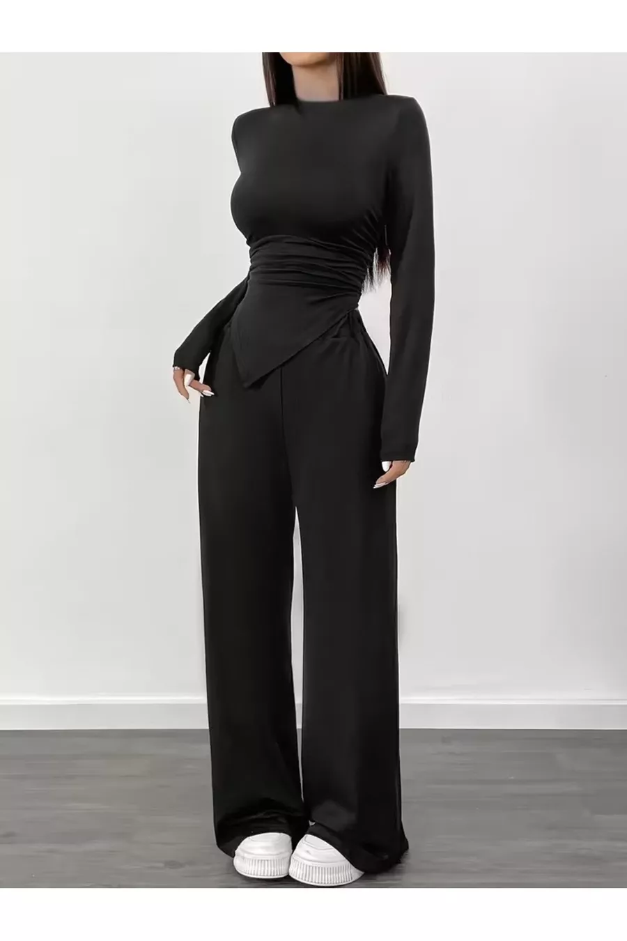 Asymmetrical Long-Sleeve Blouse and Pants Set