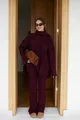 Fabric Type: Knit Material: Acrylic Pattern: Cable Knit Fit: Oversize Neck Type: Crew Neck Color: Burgundy Product Detail: Knitted Detail Pocket: No Pockets Product Type: Plain Sleeve Length: Long Sleeve Type: Standard Sleeve Collection: Basic Thickness: Thick Waist: Regular Waist Leg Type: Wide Leg Silhouette: Basic Occasion: Casual/Daily Length: Long Set: Sweater-Pants Additional Feature: No Additional Feature Weaving Type: Knitted Persona: Fashion Forward Belt/Strap Status: Without Belt Print/Embroidery Technique: All-over Print Number of Pieces: 3 Lining Status: Unlined Sustainability Detail: No Material Composition: 7% Polyester, 93% Acrylic Washing Instructions: T100 Package Contents: 2+ Season: Winter Country of Origin: TR Box Status: No Box Closure Type: Full Zipper Closure