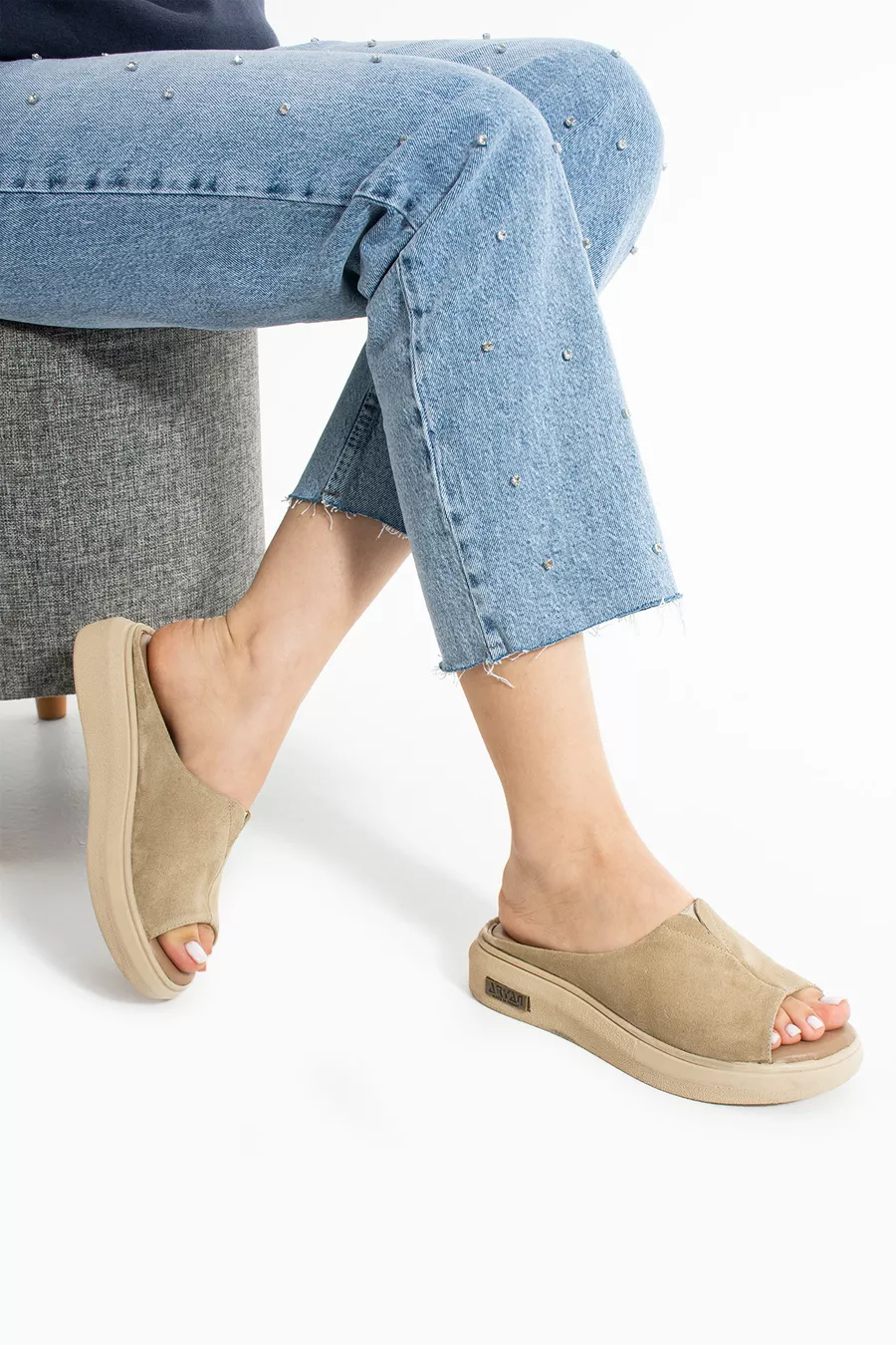 Product Details: Fusped Lining Material: Genuine Leather Material: Nubuck Upper Material: Genuine Leather Box Condition: With Box Heel Type: Flat Heel Heel Height: Low Heel (1-4 cm) Color: Beige Sole Material: Poly Insole Material: Genuine Leather Sustainability Detail: No Persona: Feminine Additional Feature: Orthopedic Insole Material Composition: Genuine Leather and Poly Component Occasion: Casual/Daily Washing Instructions: Can be wiped with a damp cloth Pattern: Plain Fabric Type: Genuine Leather Collection: Basic Package Content: Single Piece Origin: TR Season: Summer Outer Material: Suede