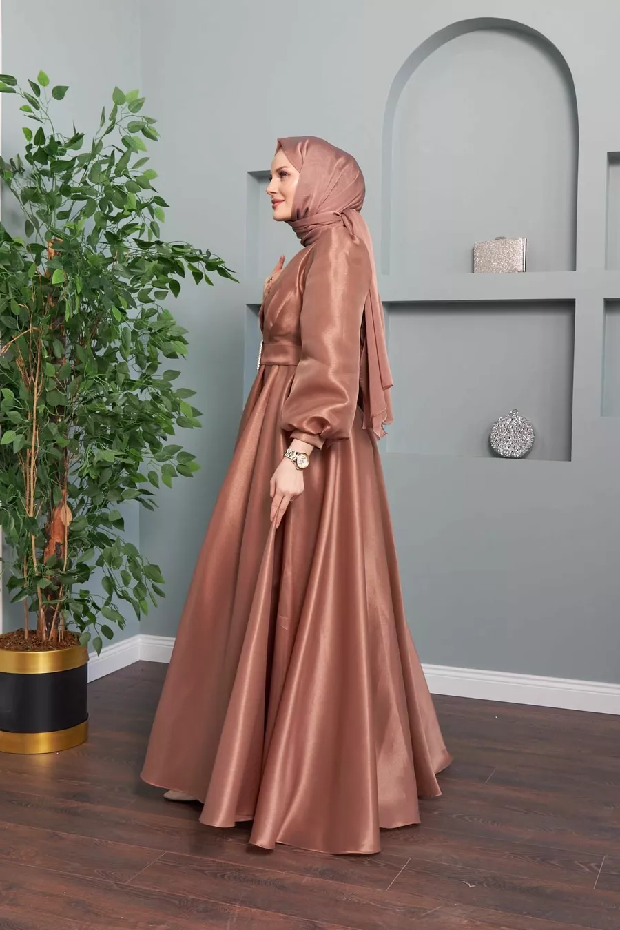 This product will be shipped by Quenmadam Moda\xa0. More than 100 stocks were offered to be sold at the campaign price. The seller determines the sales price of the product you have examined. A product can be sold by more than one seller. The sellers of the products offered for sale by more than one seller are ranked according to the price they set for the product, the seller ratings, the delivery status, the promotions in the products, whether the shipping is free or not, and whether the products can be delivered with fast delivery, the stock and categories of the products. A maximum of \xa010 pieces of this product can be ordered.\xa010 units can be ordered by Queenmadam.\xa0This limit is not valid for corporate orders, and different limits can be set for corporate orders. Free returns within 15 days. Click \xa0 for more information. If the products you order have stock, we prepare your orders to be delivered to the relevant cargo company the next day until 17:00 on the same day, for orders placed after 17:00. Fabric Info: Organza Fabric Mold Information: Full Mold Collar Information: Half Throat Collar Model Dimensions: Height: 1.75Bust: 92Waist: 68Hips: 98Weight: 58 The product on the model is size 38. Size 38: Bust: 92 cm Waist: 76 cm Sleeve: 65 cm Height: 153 cm