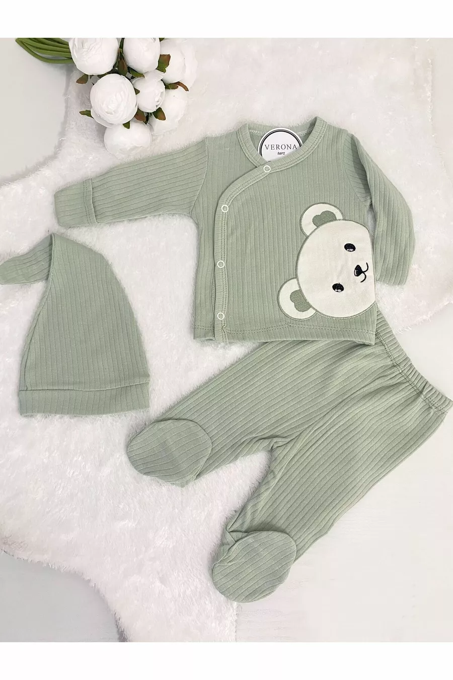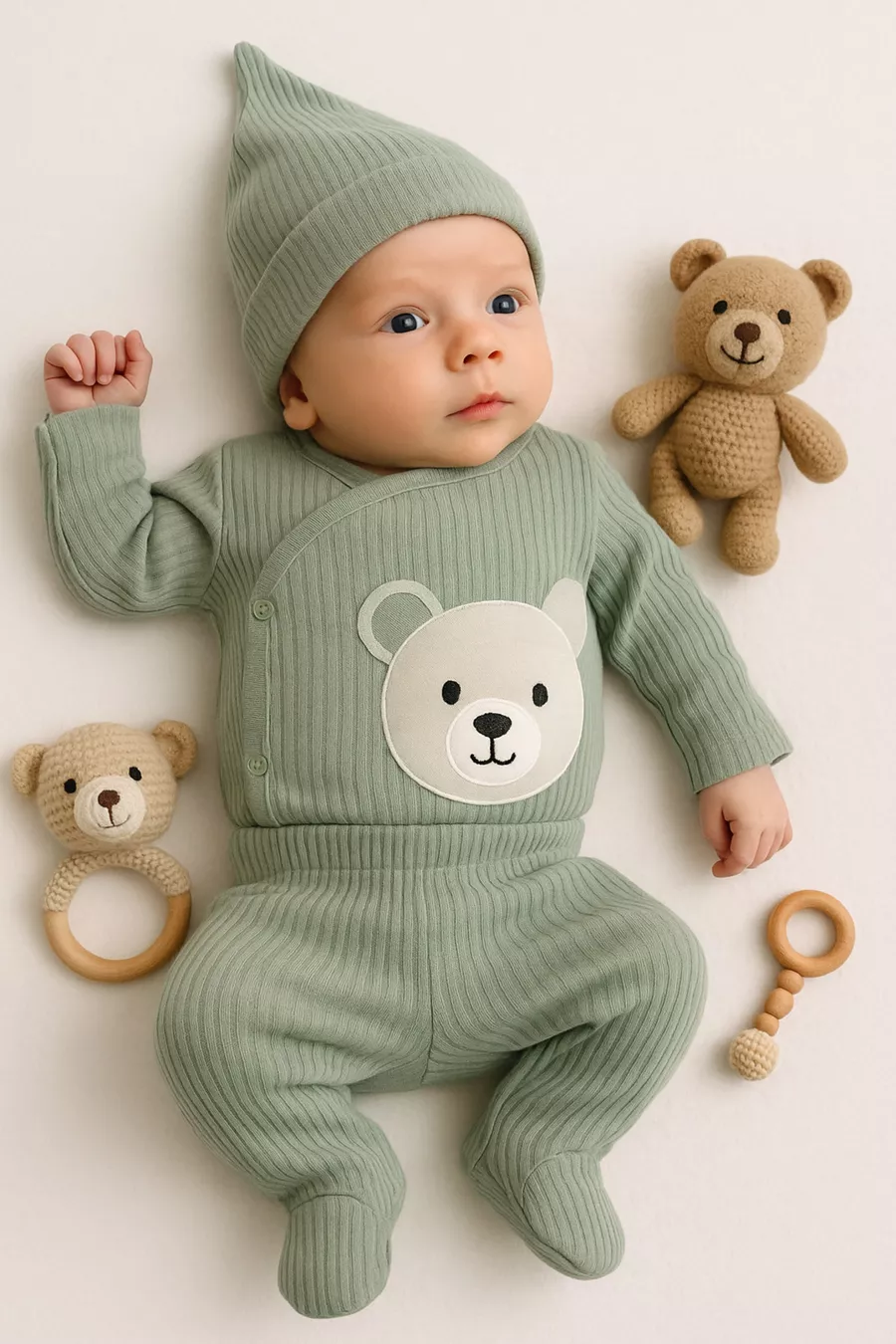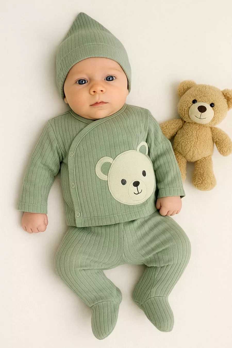 Baby Boy 3-Piece Hospital Exit Set with Teddy Bear Detail Newborn Outfit 0-3 Months cm Organic Cotton