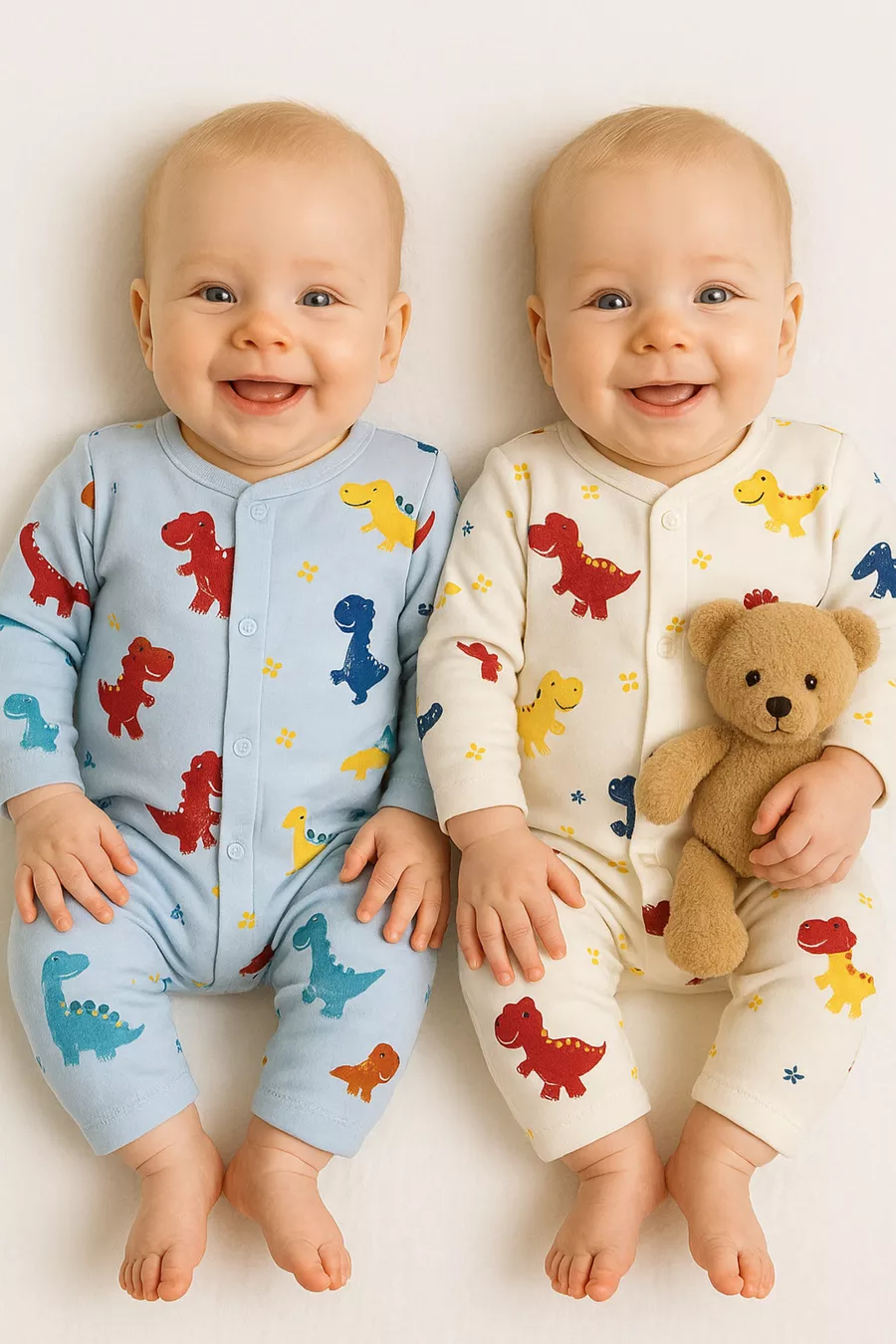 Baby Boy Teddy Bear Pattern 2-Piece Romper Set Newborn Outfit