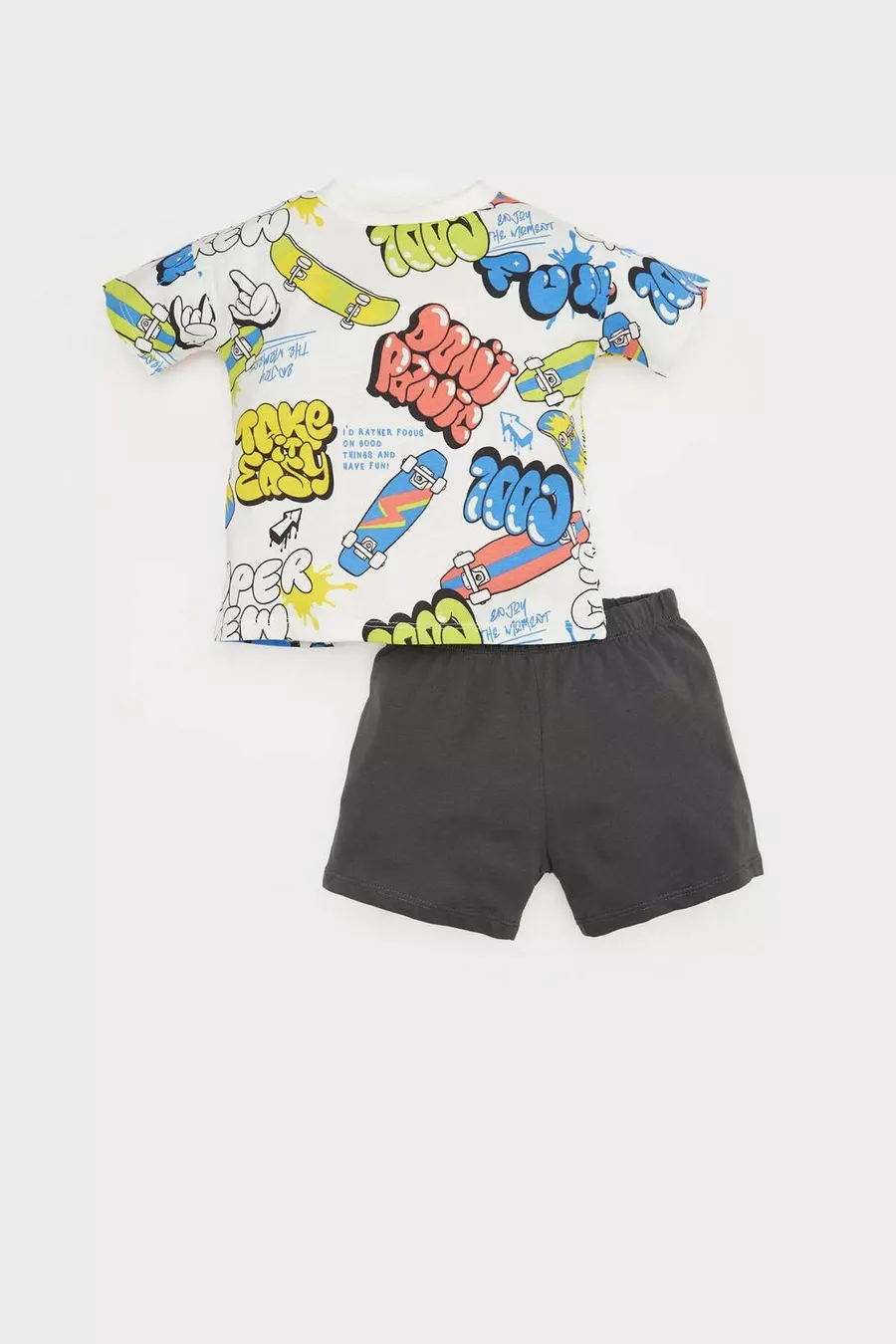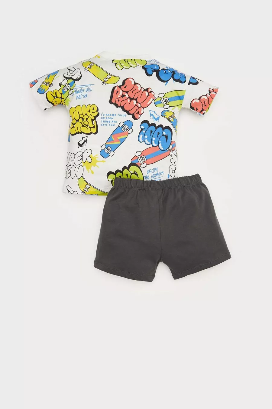 Baby Boy 2-Piece Set Skateboard Print Short Sleeve T-Shirt with Elastic Waist Shorts SM