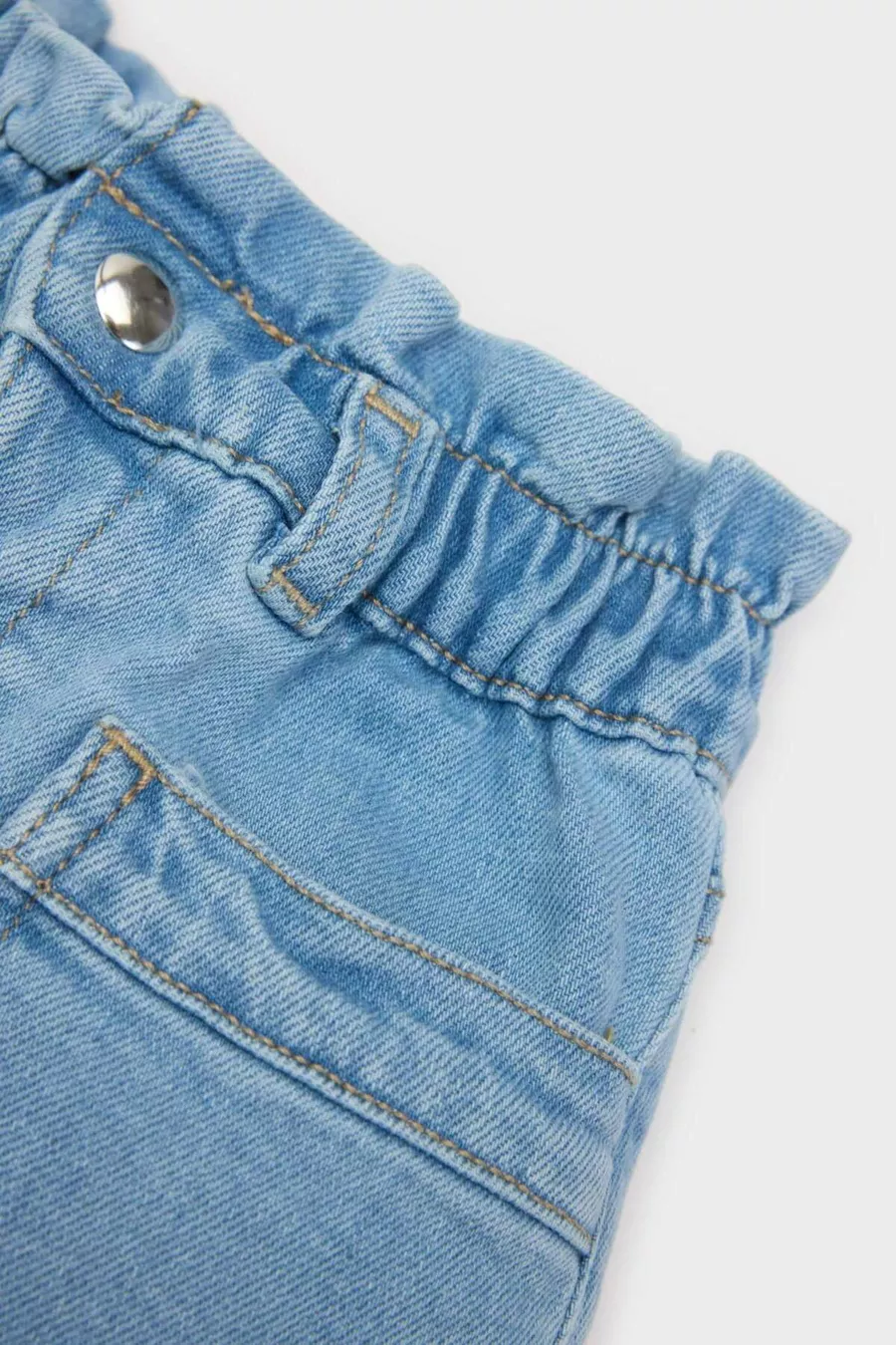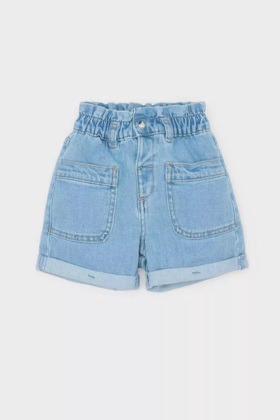 Waist: High Waist Pattern: Solid Material: Denim Color: Blue Closure Type: Elastic Fabric Type: Woven Pocket: Double pocket Product Type: Plain Leg Type: Straight Leg Additional Feature: Elastic waist Silhouette: Relaxed Belt/Strap Status: Without belt Sustainability Detail: No Length: Short Material Composition: 98% Cotton, 2% Elastane Washing Instructions: T44 Origin: TR Box Condition: No box