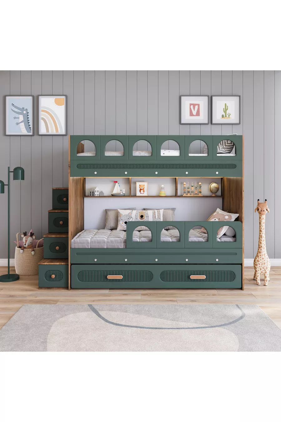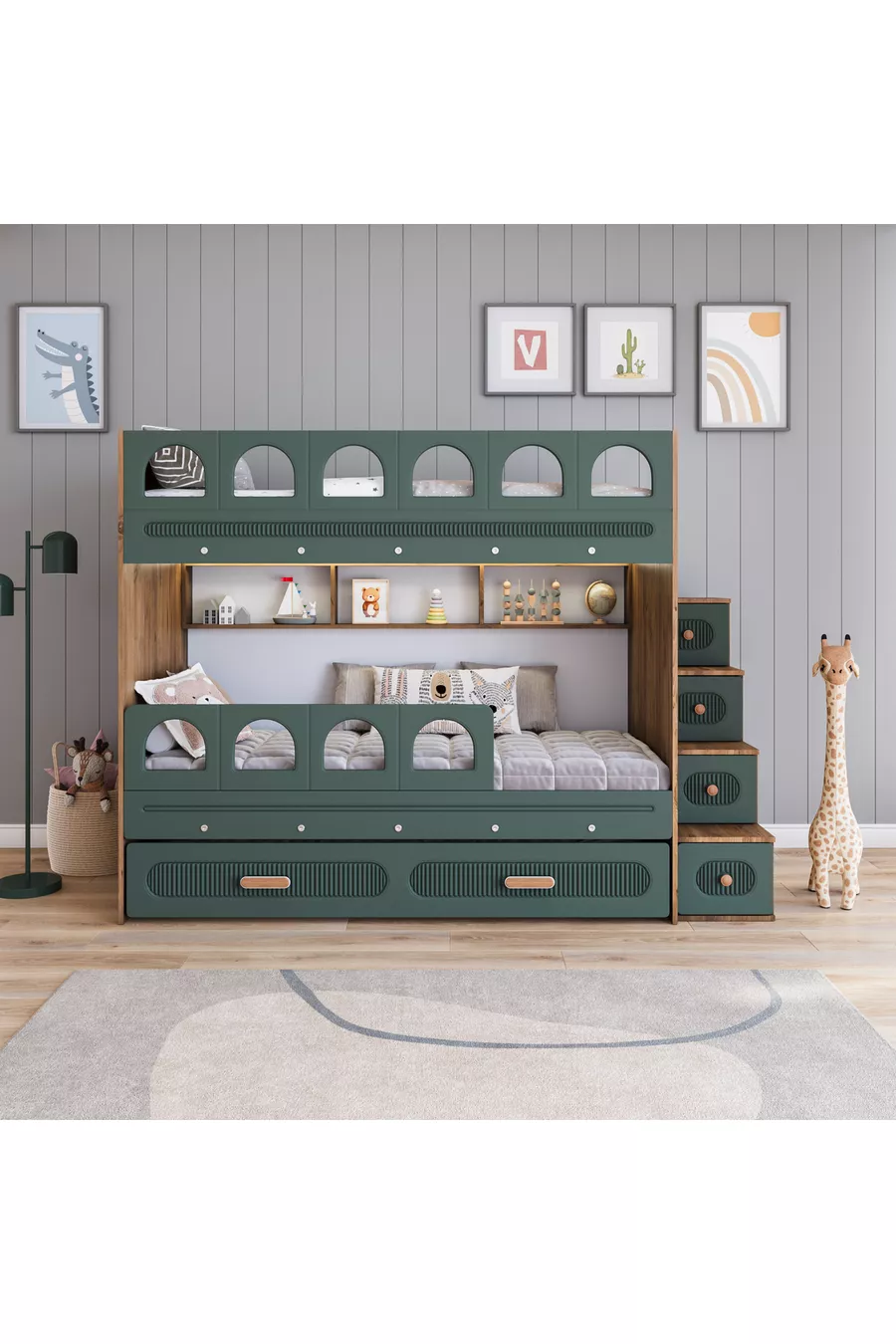 Barrel Loft Bed with Bunk (Green)