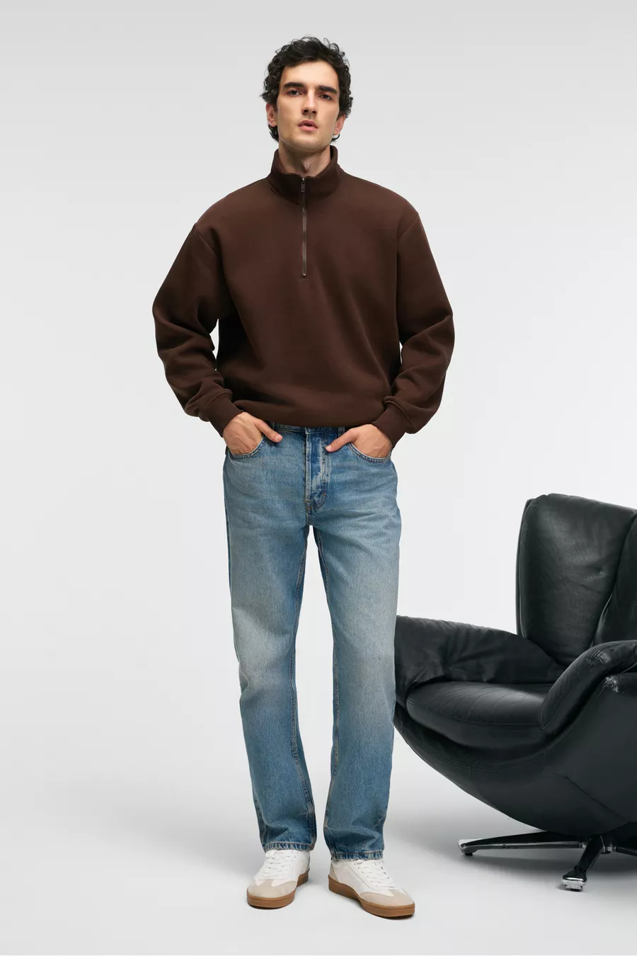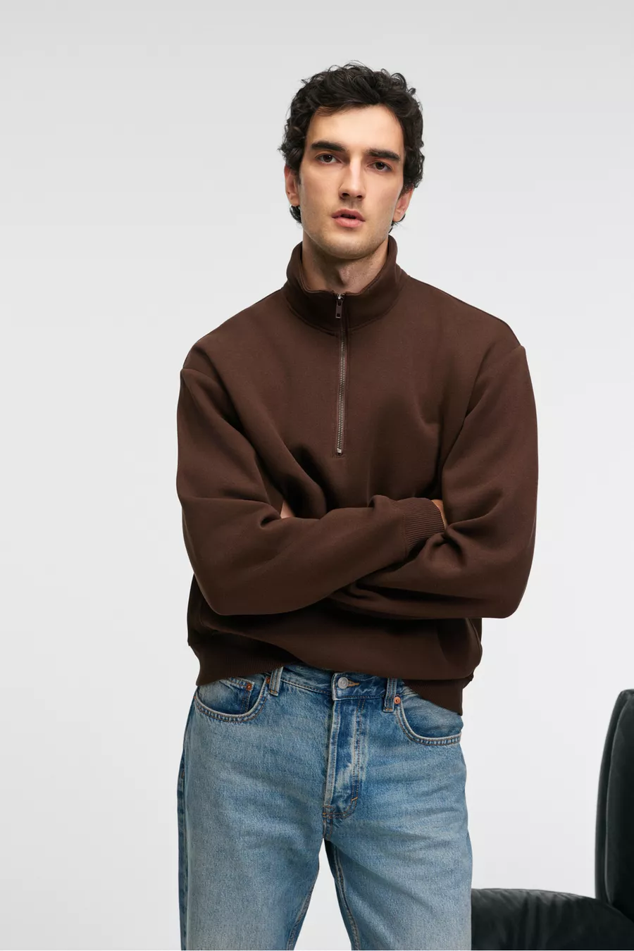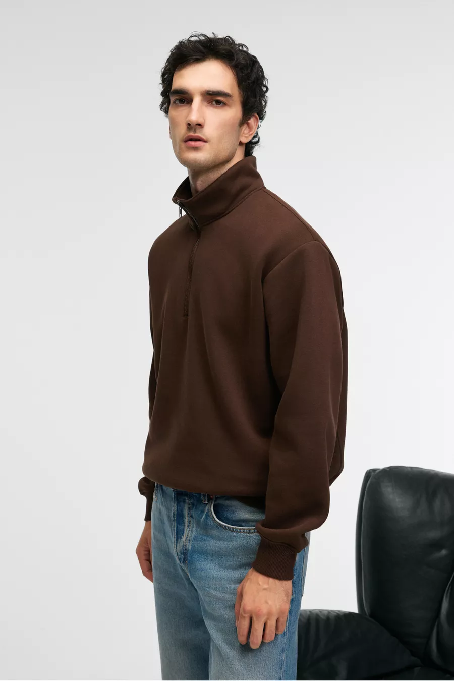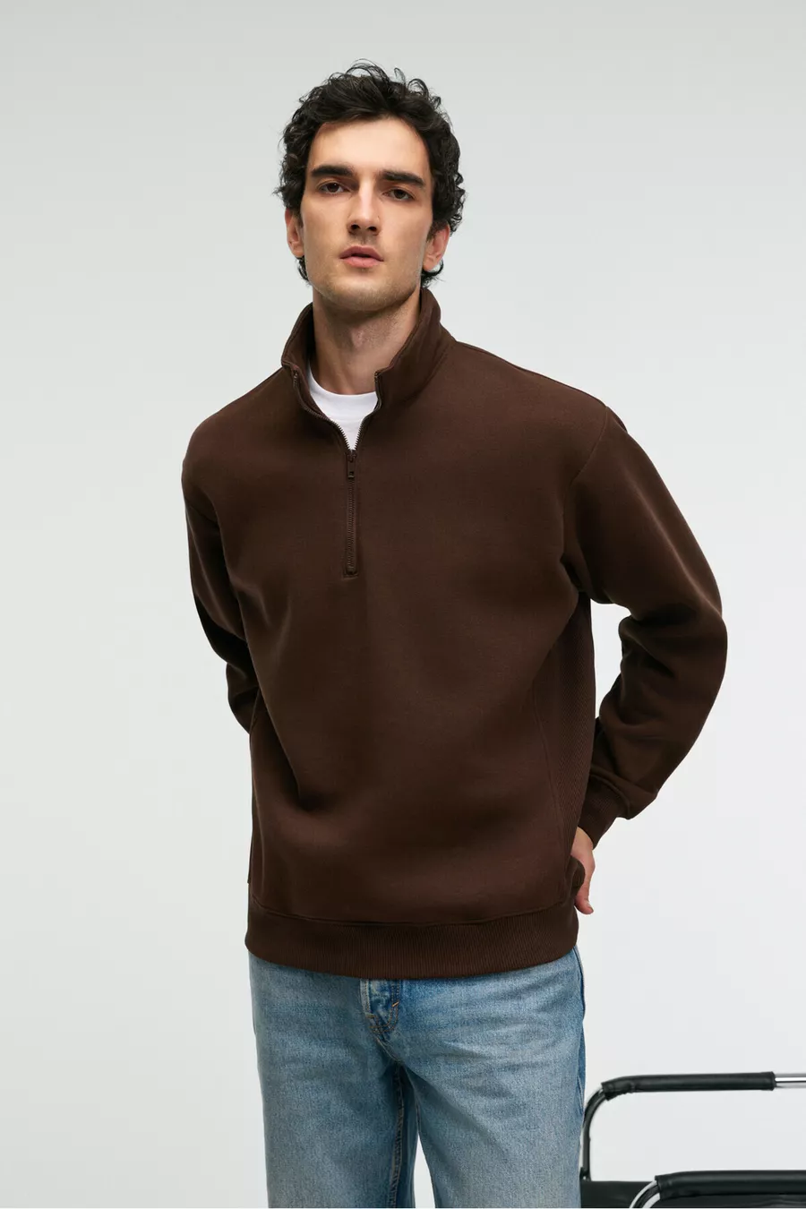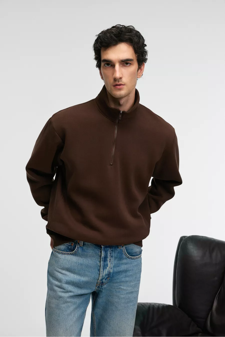 BAXTER Men's Zip-Up Stand Collar Relaxed Brown Sweatshirt