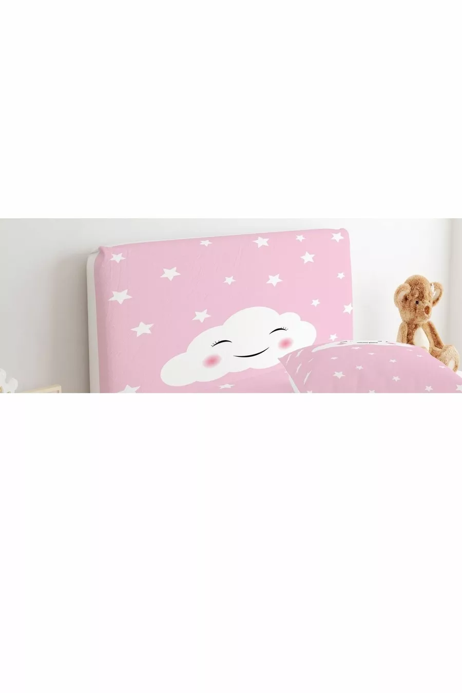 Bed Base Headboard Cover Pink Background Smiling Cloud