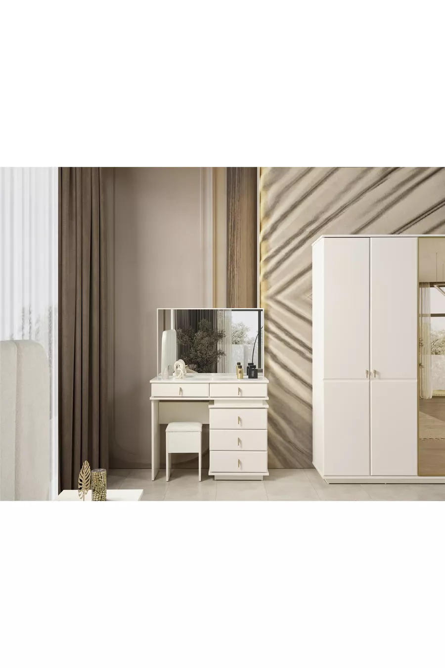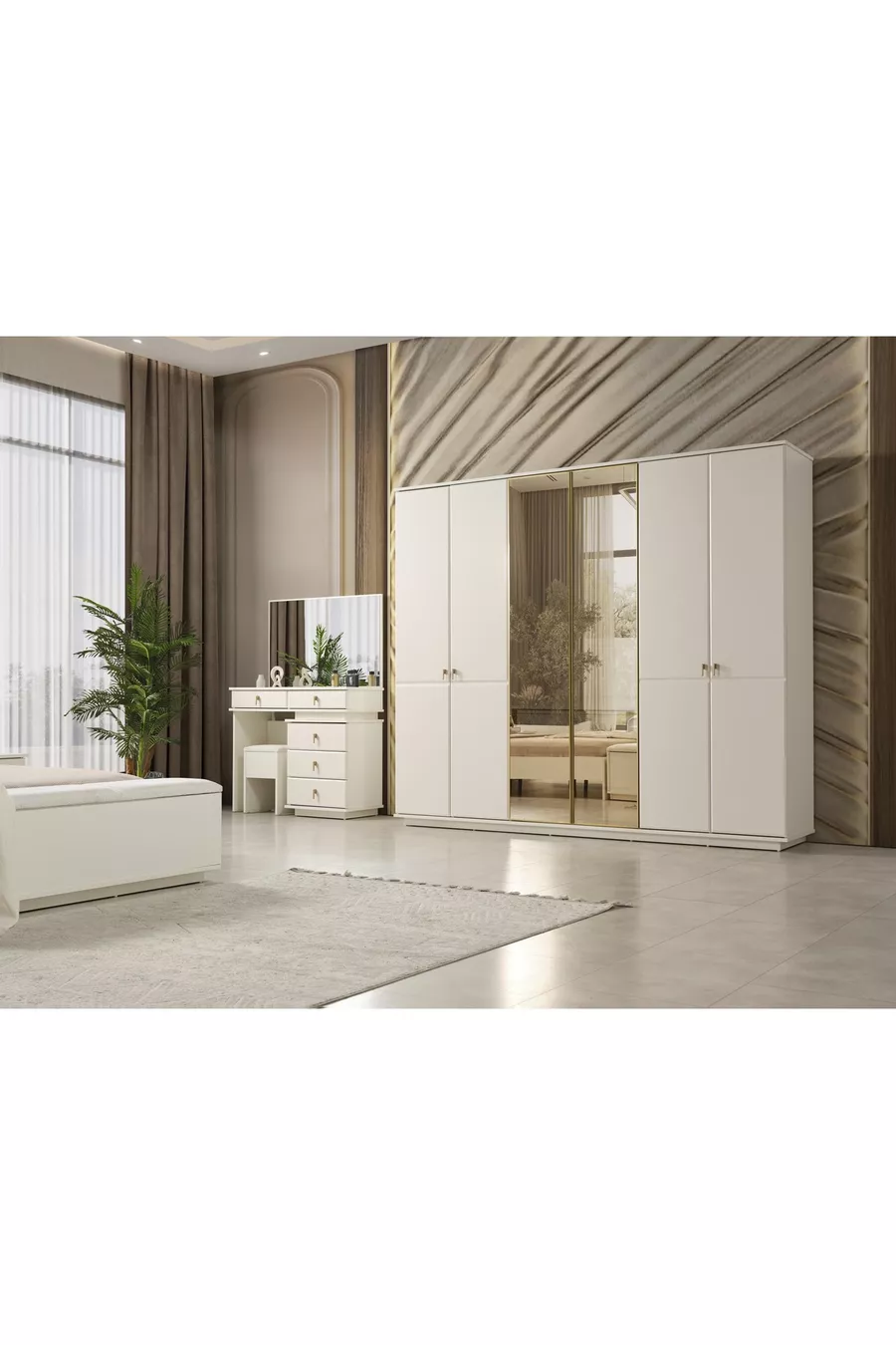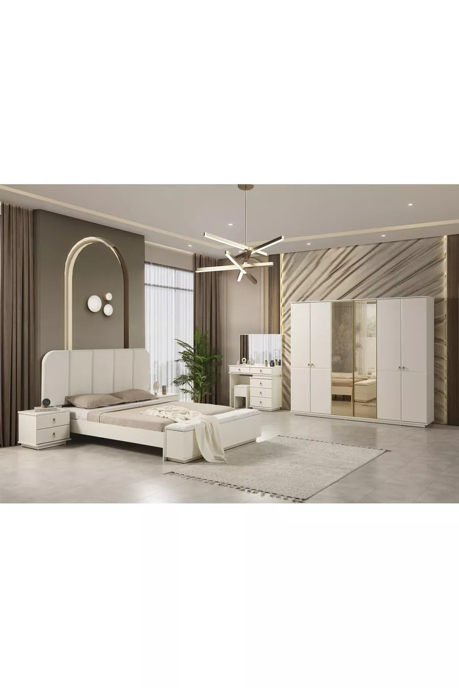 Set Contents: Bed + 2 Nightstands + Dresser + Wardrobe + Mirror