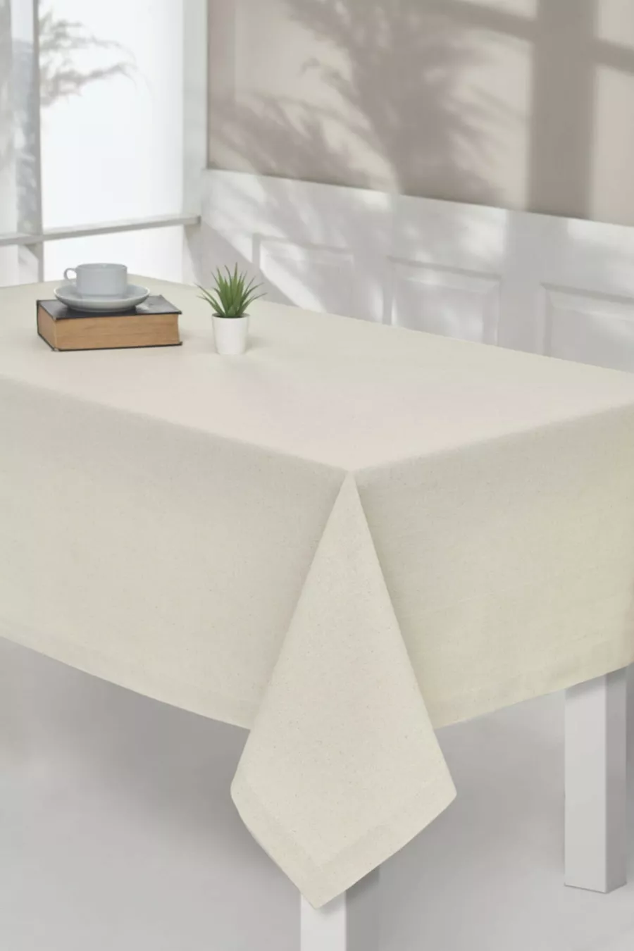 Beige Plain Buldan Linen Authentic Tablecloth