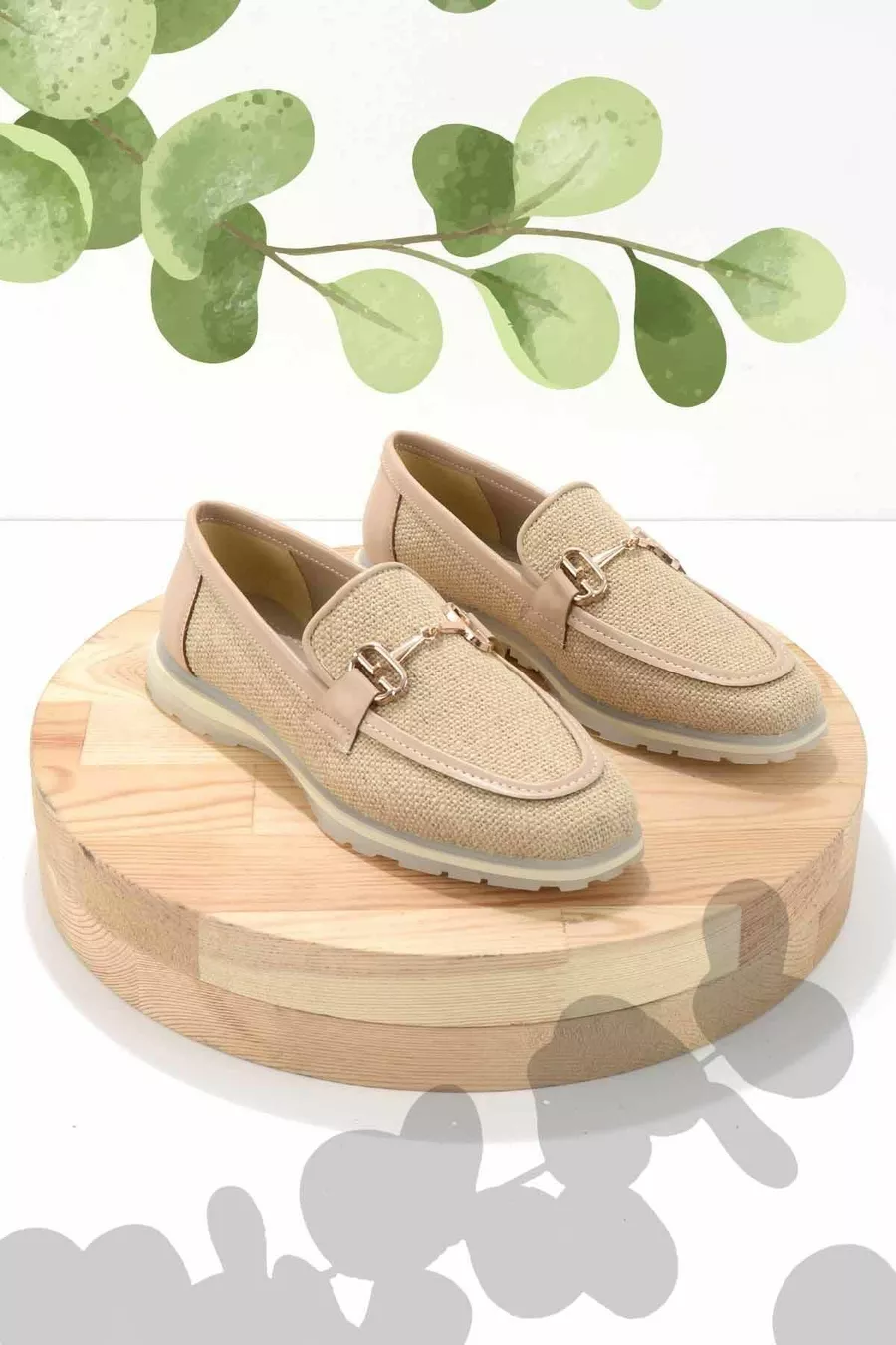 Beige Wicker Women's Loafer Shoes