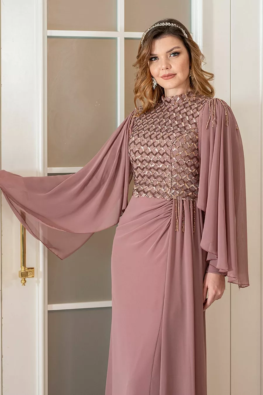 This product will be shipped by \xa0 HASAY MOOD\xa0. More than 5 stocks are offered to be sold at the campaign price. The seller determines the sales price of the product you have examined. A product can be sold by more than one seller. The sellers of the products offered for sale by more than one seller are ranked according to the price they set for the product, the seller ratings, the delivery status, the promotions in the products, whether the shipping is free or not, and whether the products can be delivered with fast delivery, the stock and categories of the products. A maximum of \xa010 pieces of this product can be ordered.\xa010 units can be ordered by Queenmadam.\xa0This limit is not valid for corporate orders, and different limits can be set for corporate orders. Free returns within 15 days. Click \xa0 for more information. Product Name: Belin Evening Dressrose Dried AHU9341 Product Code: AHU9340 Fabric Feature: Tulle Season: 4 Seasons Collar: JUDGE Mold: Normal mold Product Length: 160 cm Product Feature: Wadding and Waist Stone Detailed / Chest Stone Embroidered / Hidden zipper from the back Model Dimensions Height: 165cm Size:38