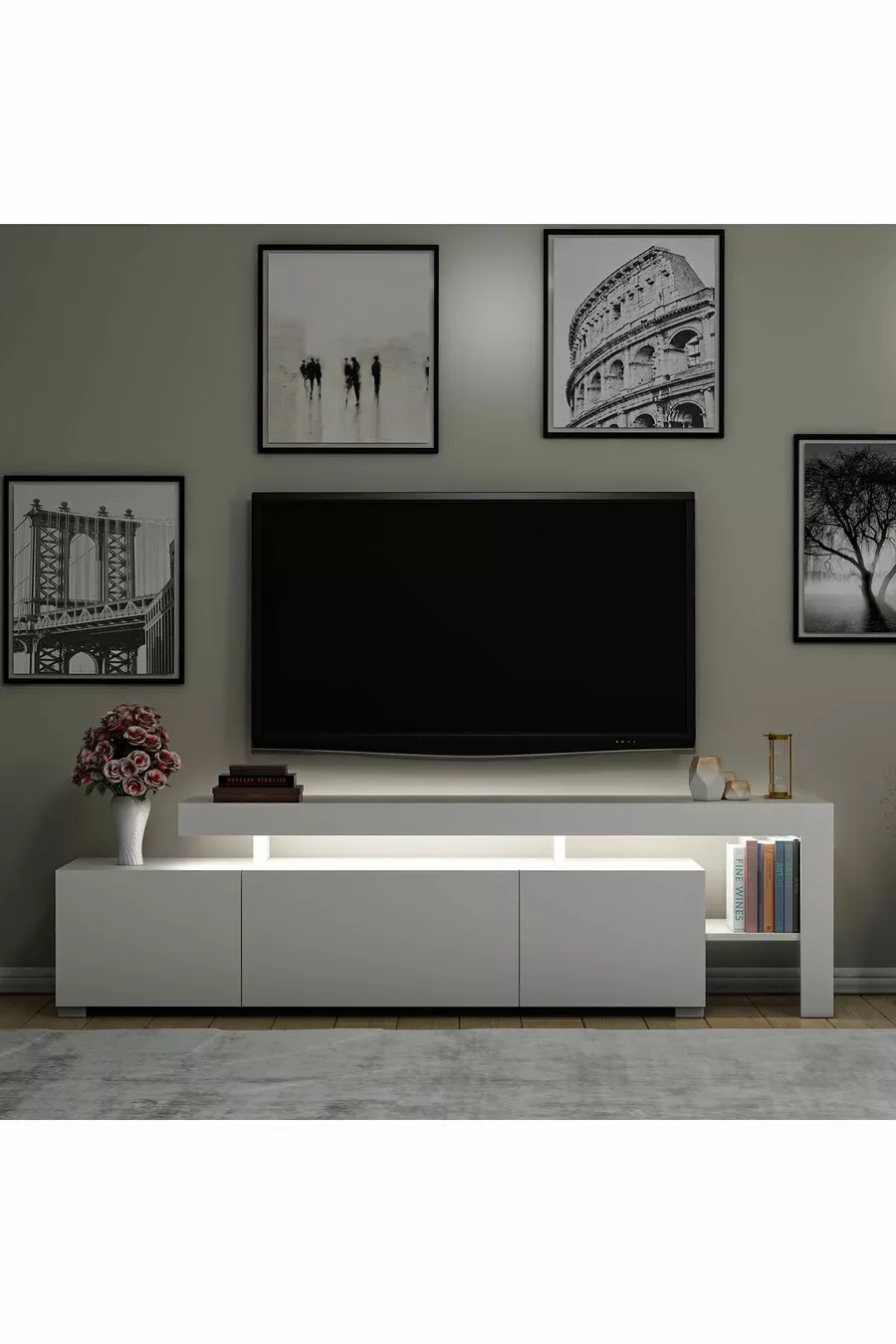 Material: Particleboard Feature: LED Color: White Size/Dimension: One Size Height: 53 cm Width: 192 cm Depth: 37 cm Warranty Period: 2 Years Style: Modern Theme / Style: Modern Origin: TR