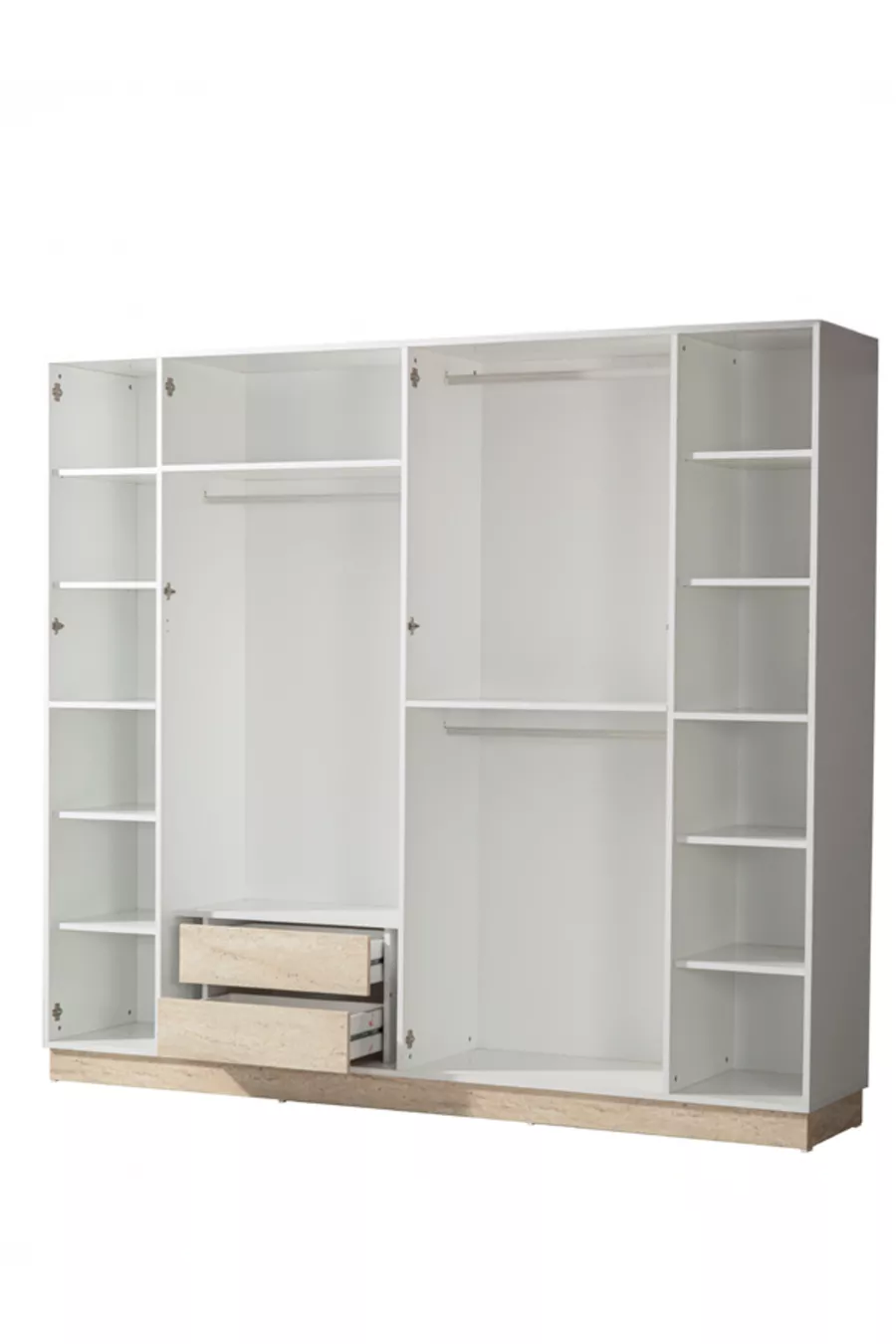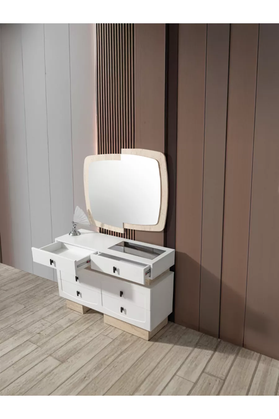 Color: Multicolor Warranty Period: 2 Years Bed/Base Size: 160 x 200 Bed Function: With Storage Base Wardrobe Function: With Mirror Wardrobe Body Material: MDF Number of Doors: 6 Set Contents: Bed + 2 Nightstands + Dresser + Mattress + Wardrobe Style: Modern Theme / Style: Modern Country of Origin: TR