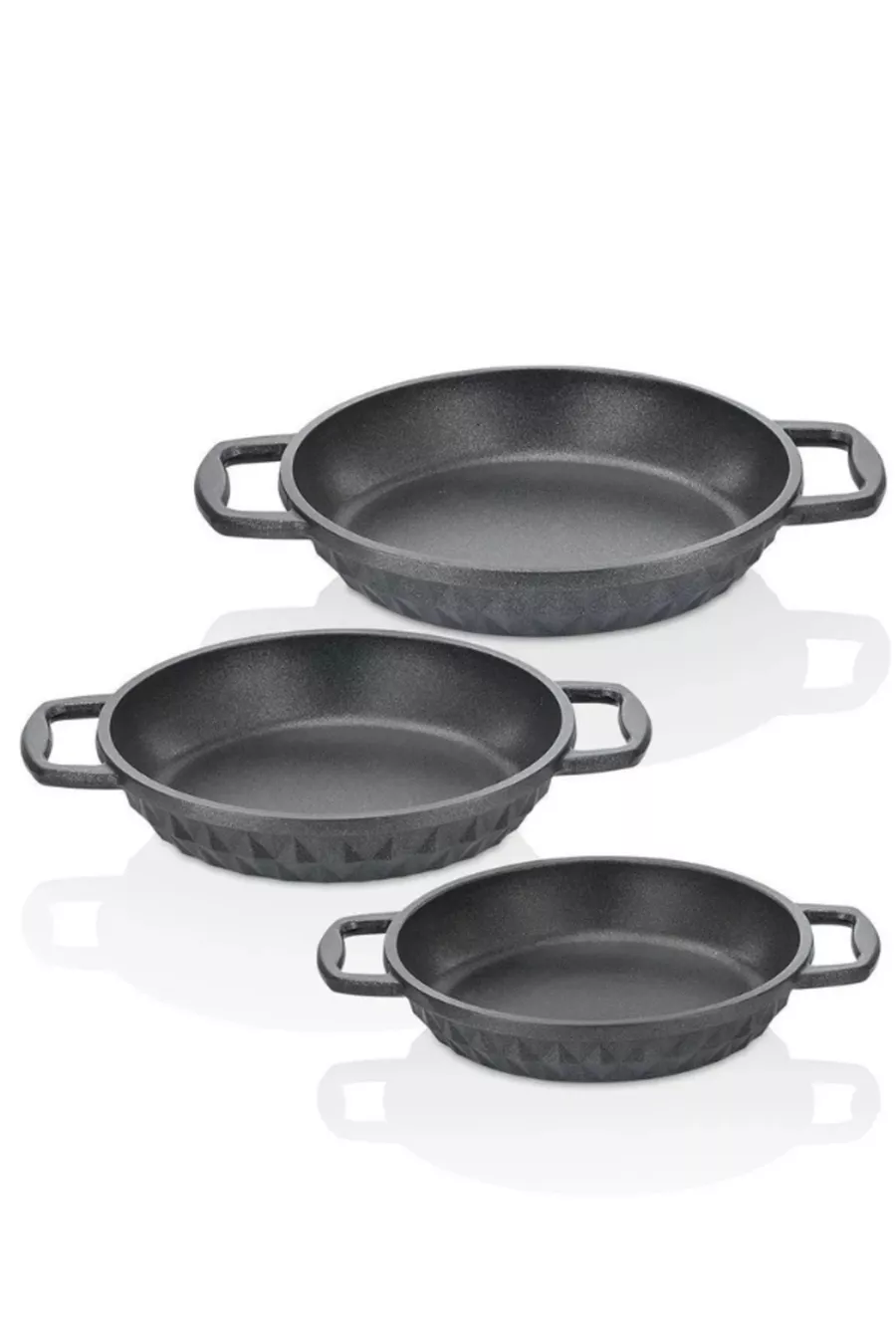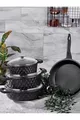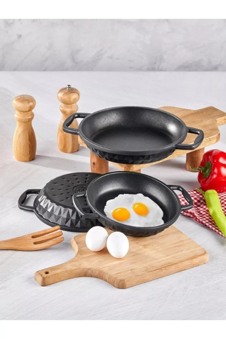Color: Black Size/Dimension: 18 cm Capacity: 5 L Feature: Non-stick Base Exterior Material: Cast Iron Interior Material: Cast Iron Number of Pieces: 12+ Material: Cast Iron