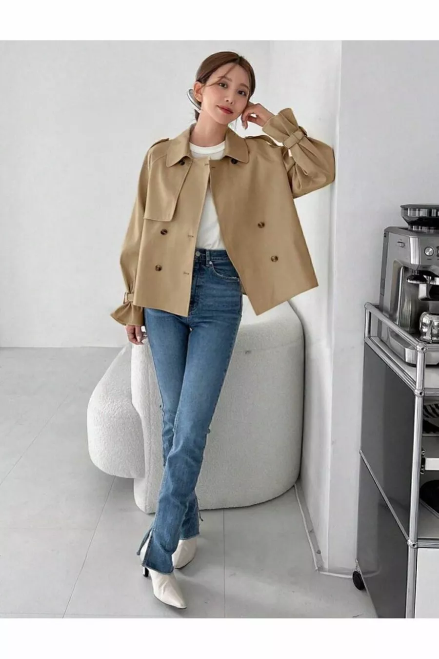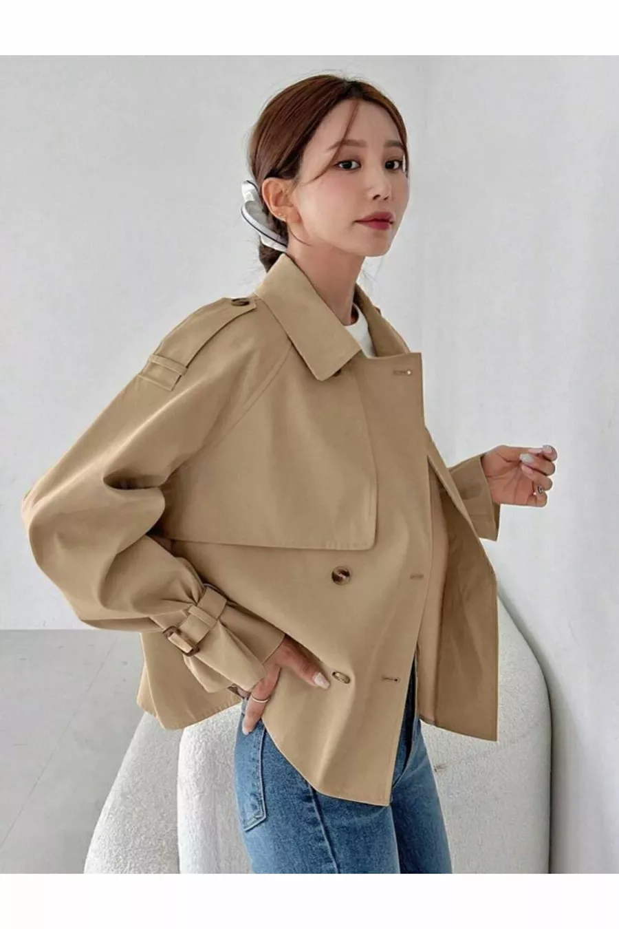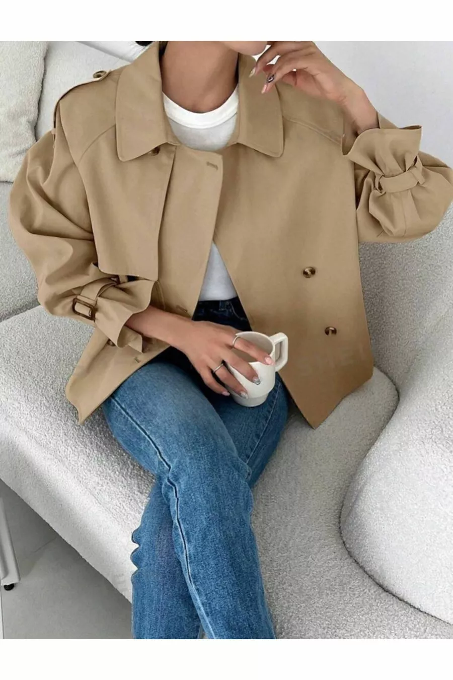 Fit: Oversize Material: Woven Fabric Type: Woven Color: Brown Neck Type: Double-breasted Pattern: Solid Product Type: Solid Pocket: Double Pocket Sleeve Type: Standard Sleeve Sleeve Length: Long Lining: Unlined Closure Type: Double-breasted Length: Short Silhouette: Double-breasted Sustainability Detail: No Occasion: Sportswear Belt/Strap: Without Belt Washing Instructions: T09 Season: All Seasons Origin: TR Weave Type: Plain Weave