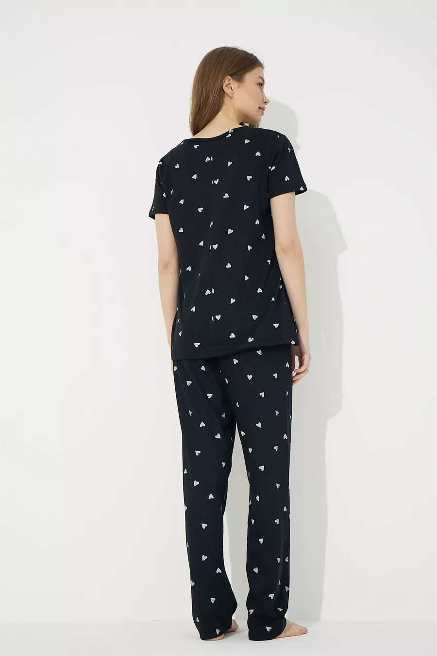 Black and White Heart Pattern Short Sleeve Cotton Pajama Set
