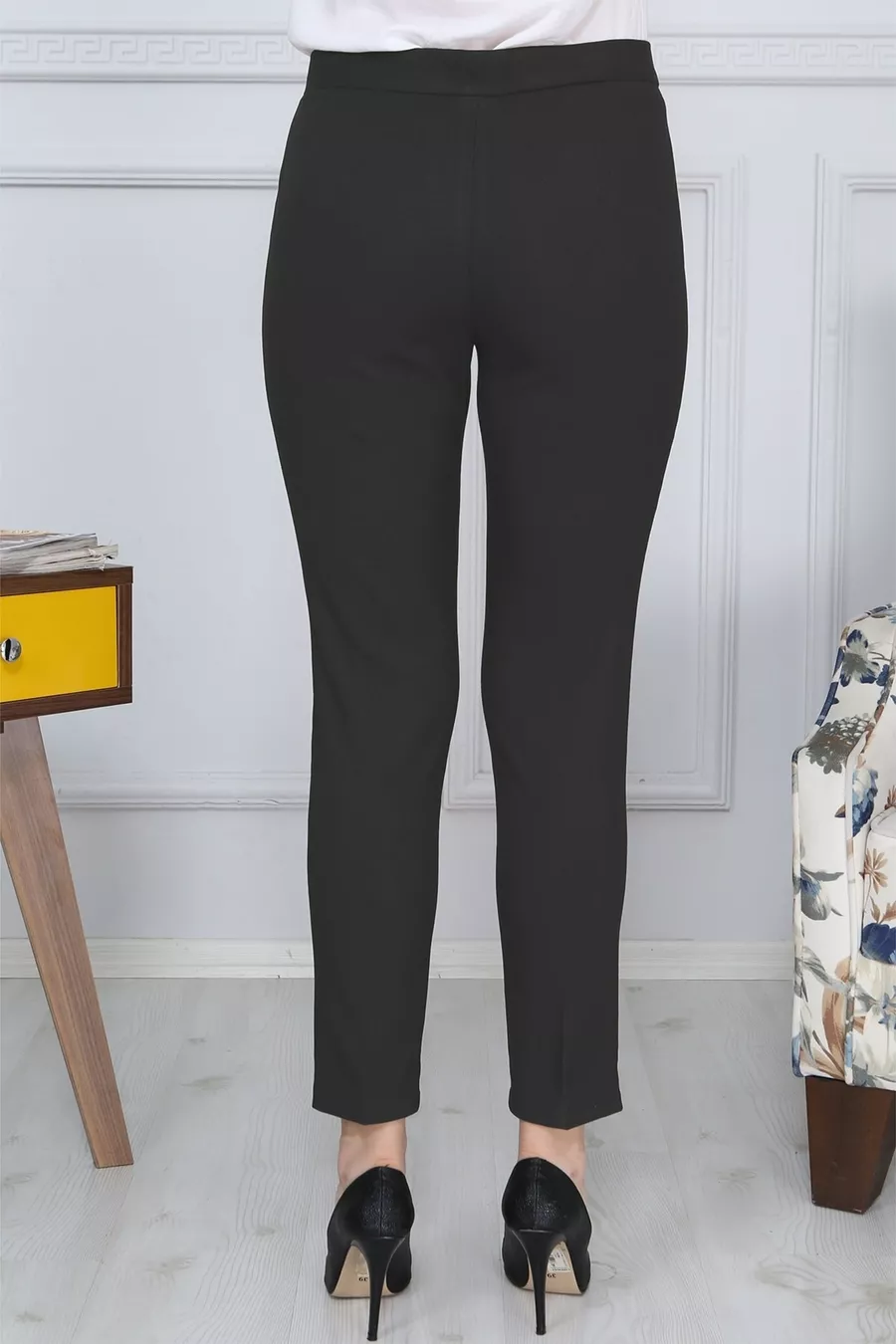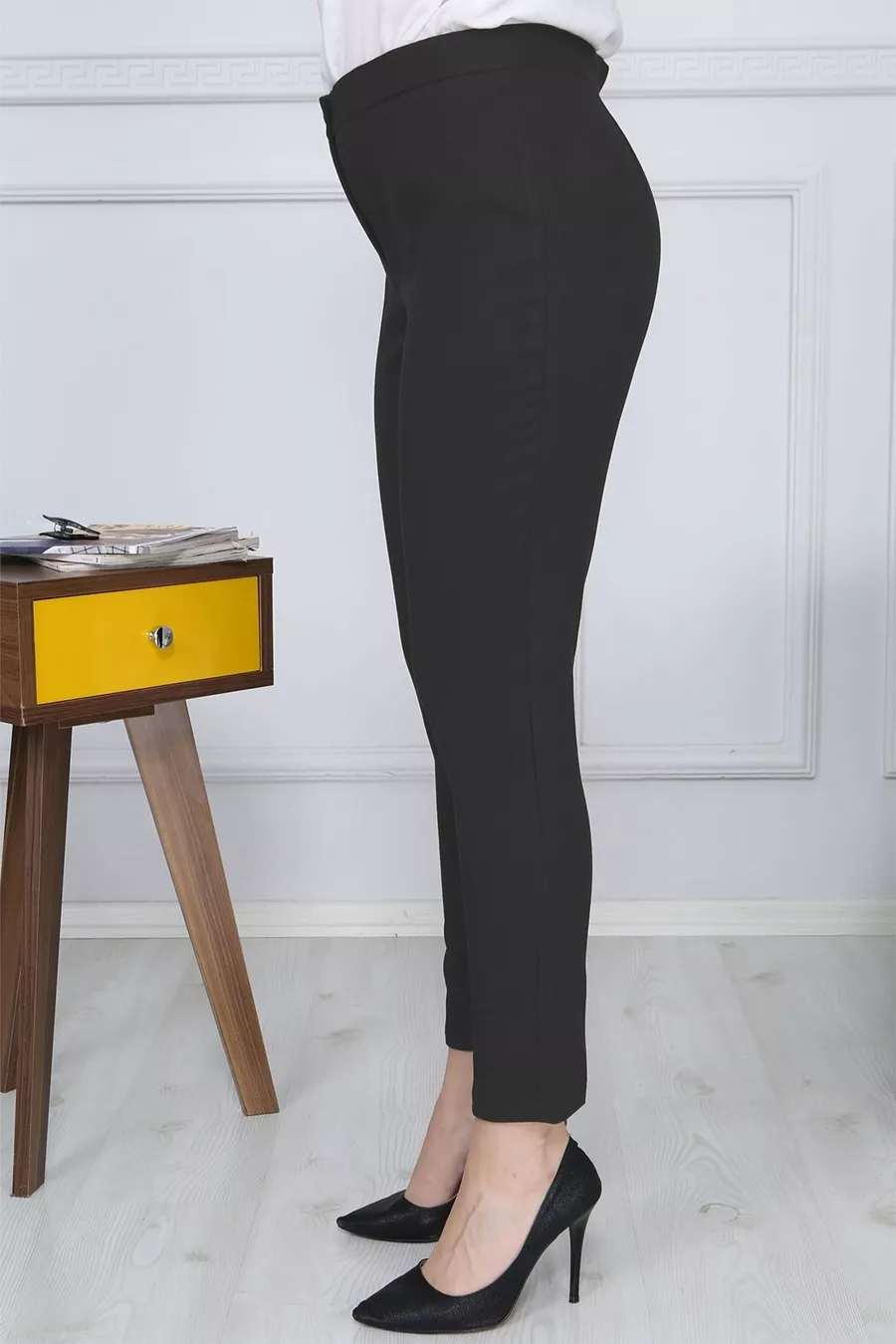 Silhouette: Regular Material: Cotton Fabric Type: Woven Closure Type: Buttoned Leg Type: Slim Fit Waist: High Waist Color: Black Fit: Classic Pattern: Solid Occasion: Casual/Daily Length: Regular Material Composition: 95% Cotton, 5% Lycra Additional Feature: Elastic Waist Washing Instructions: T09 Sustainability Detail: No Belt/Strap Status: With Belt Package Contents: Single