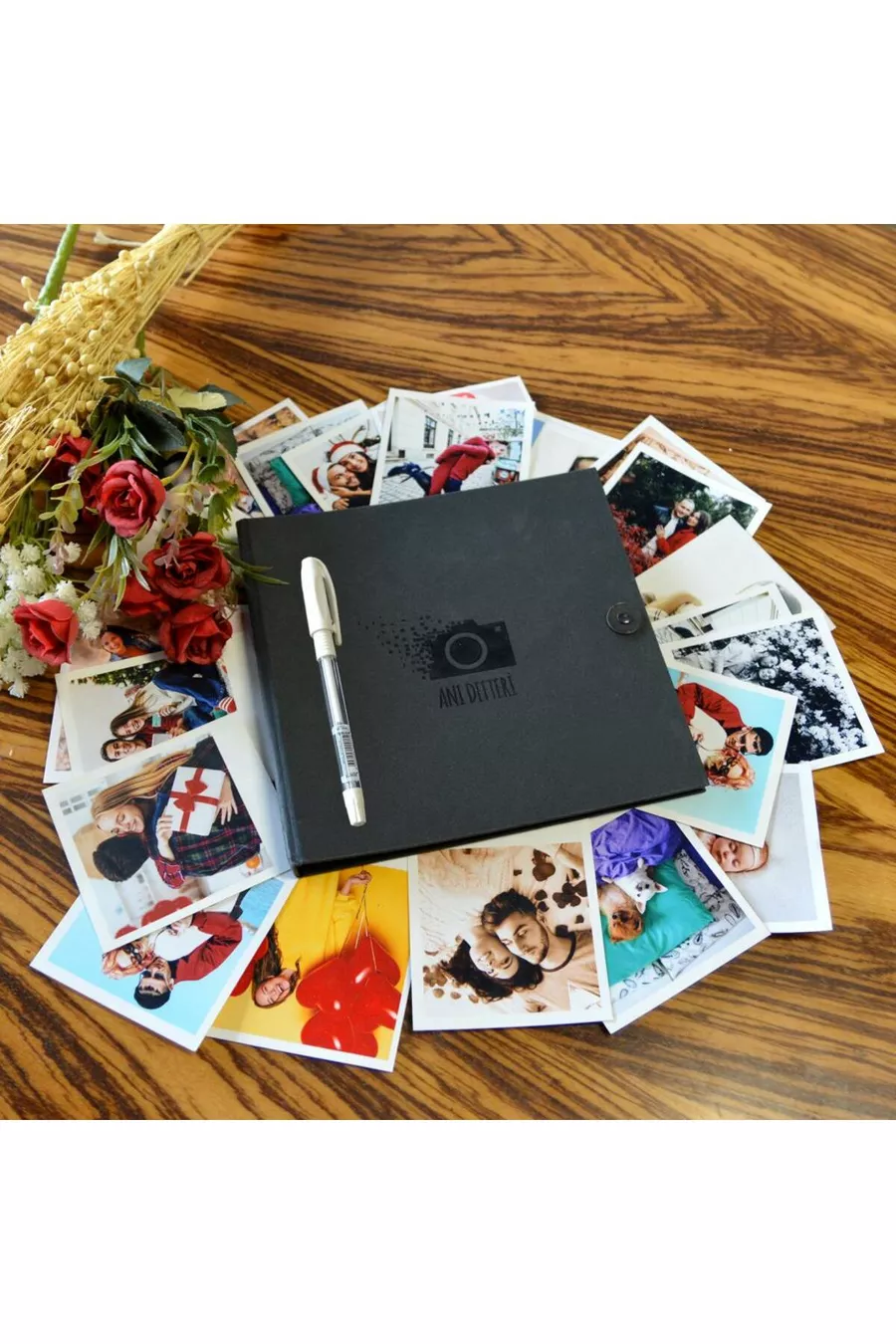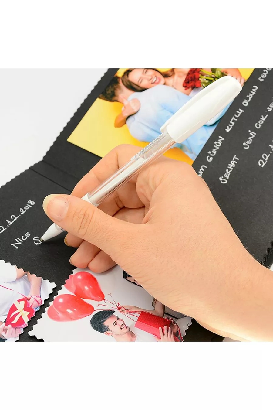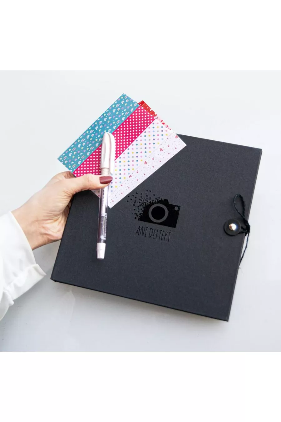 Black Customizable Memory Notebook and Photo Album with White Pen