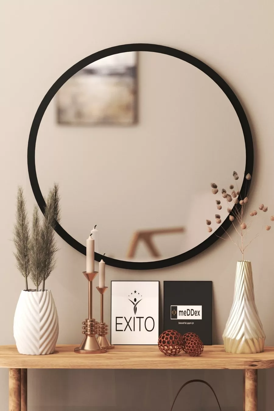 Black Decorative Round Entry Hall Corridor Wall Living Room Kitchen Bathroom WC Office Mirror cm